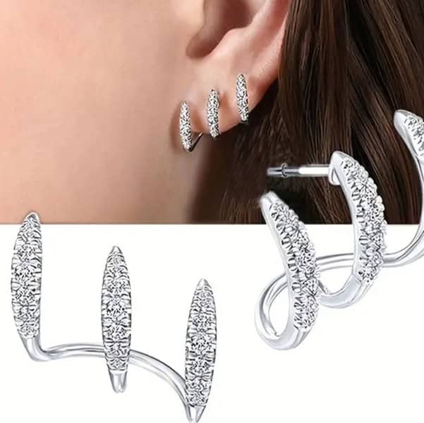 Ασημένια Τριπλά Ear Cuff Σκουλαρίκια με Στρας