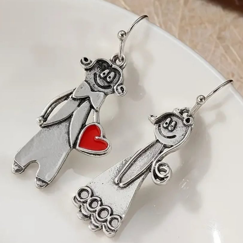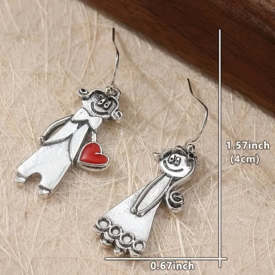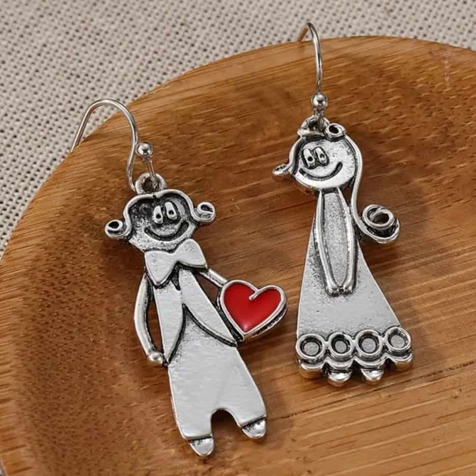Ασημί Σκουλαρίκια με Σχέδιο Ανθρωπάκια
