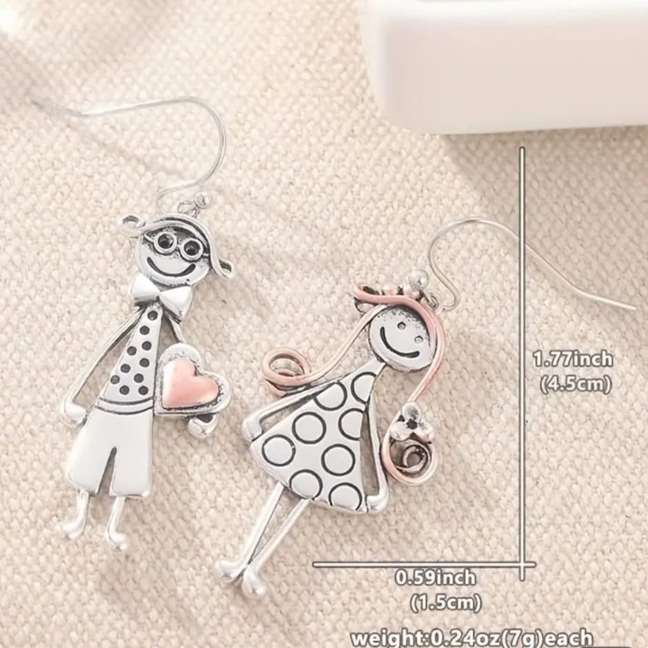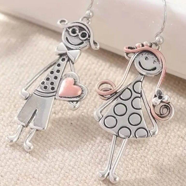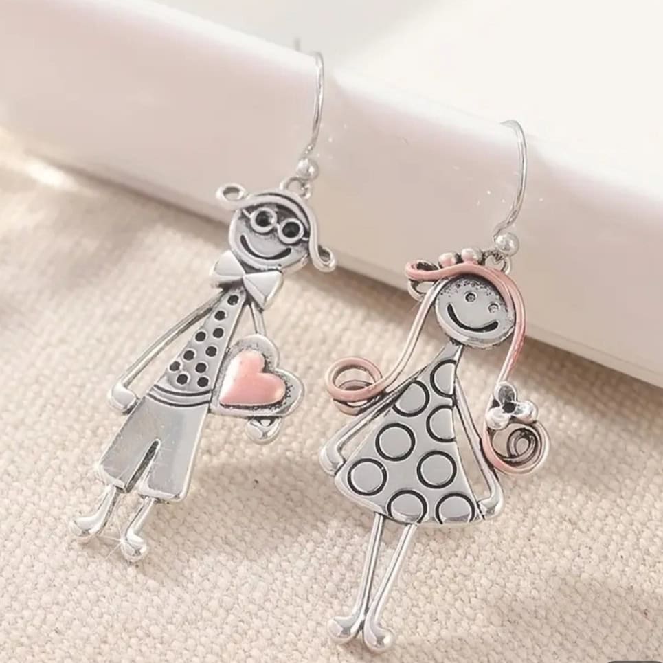 Ασημί Σκουλαρίκια με Σχέδιο Ανθρωπάκια