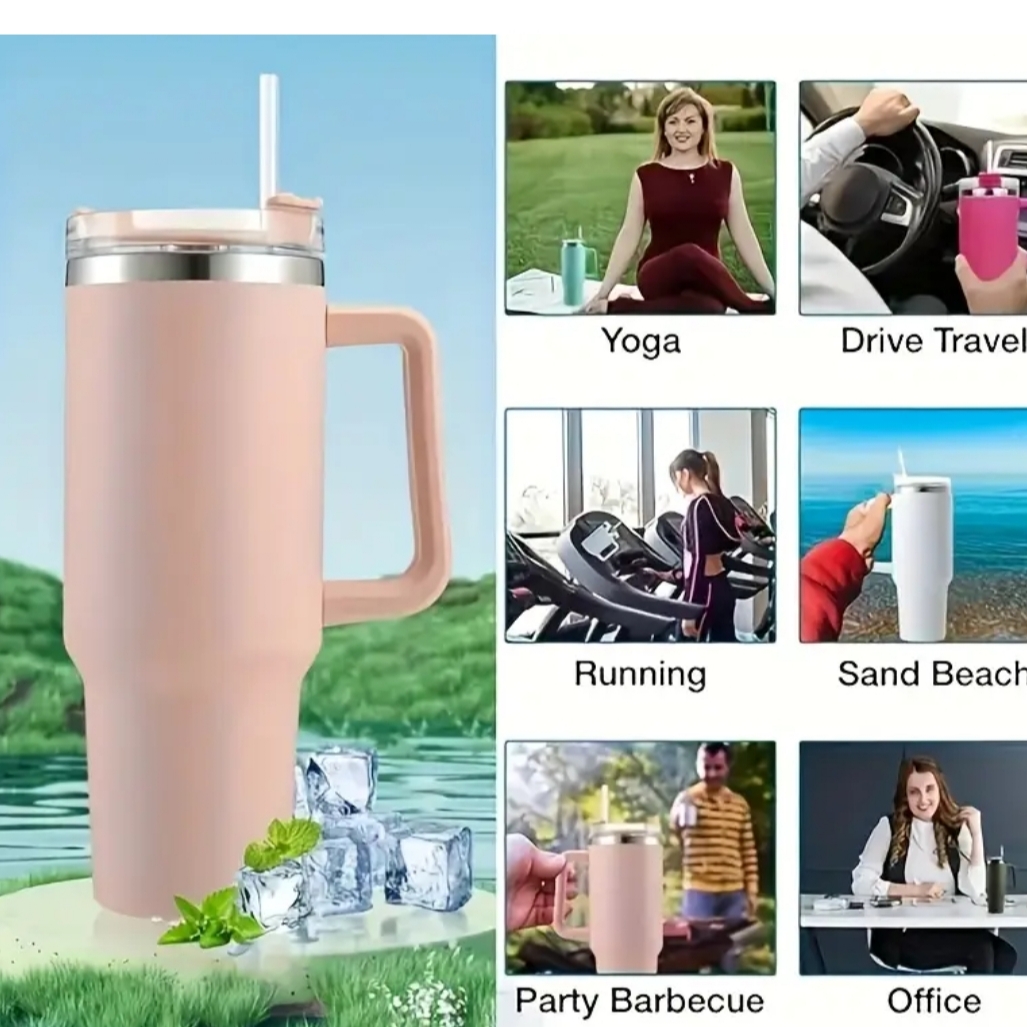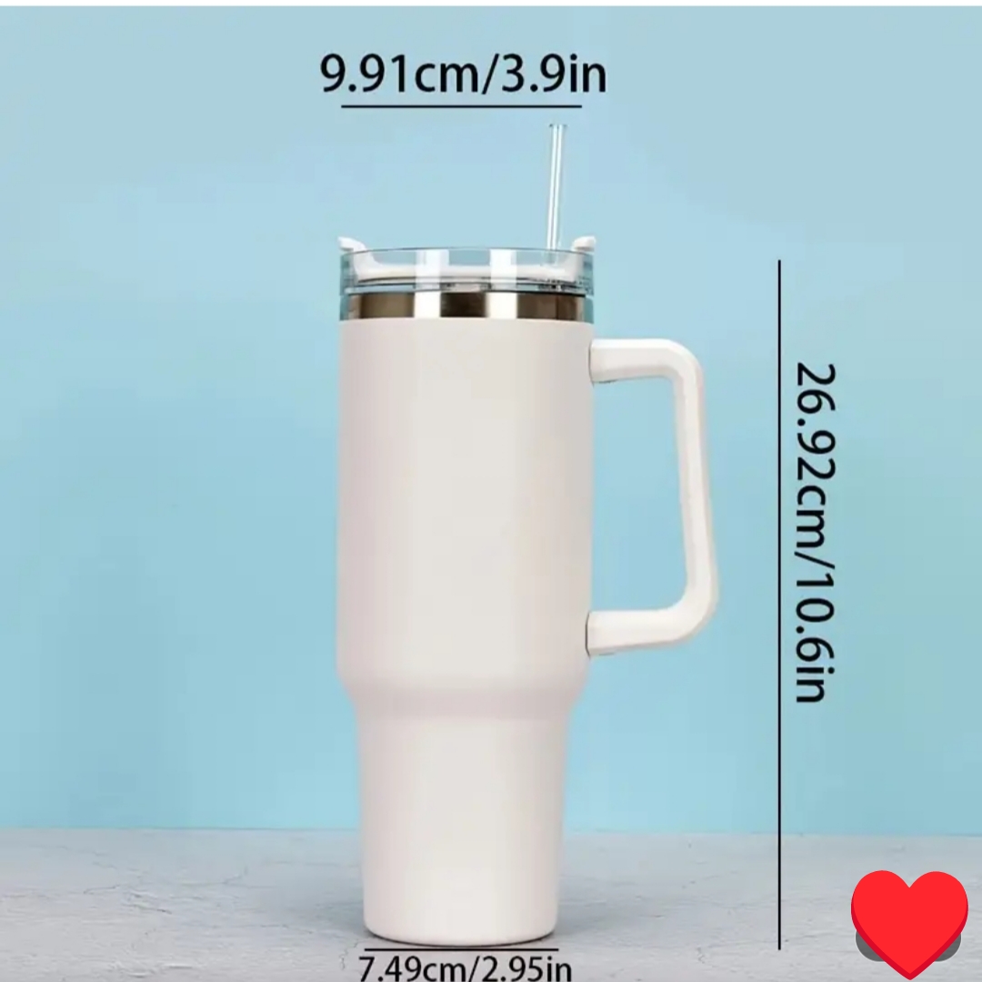 Άσπρο Ανοξείδωτο Ποτήρι με Καλαμάκι και Λαβή