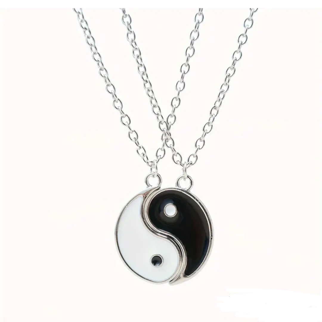 Ατσάλινο Κολιέ Φιλίας Γιν-Γιανγκ Άσπρο Μαύρο 2τμχ.