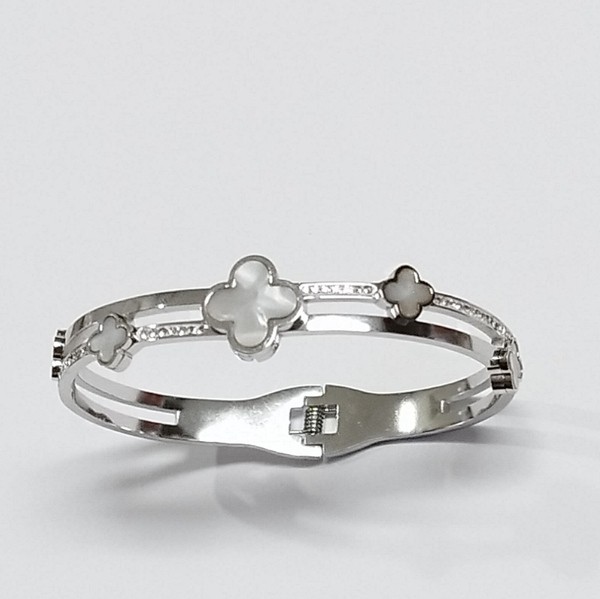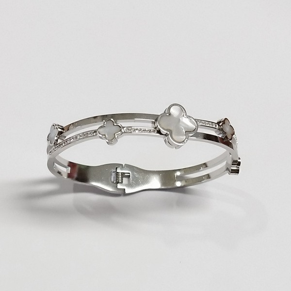 Ατσάλινο Βραχιόλι Χειροπέδα με Στρας και Λευκά Λουλούδια