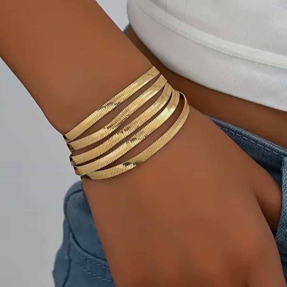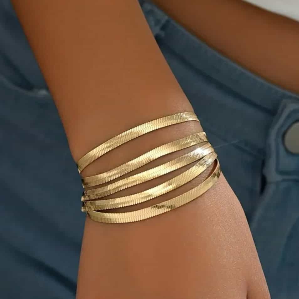 Ατσάλινο Βραχιόλι Τύπου Φίδι – Πολλαπλό (Χρυσό)