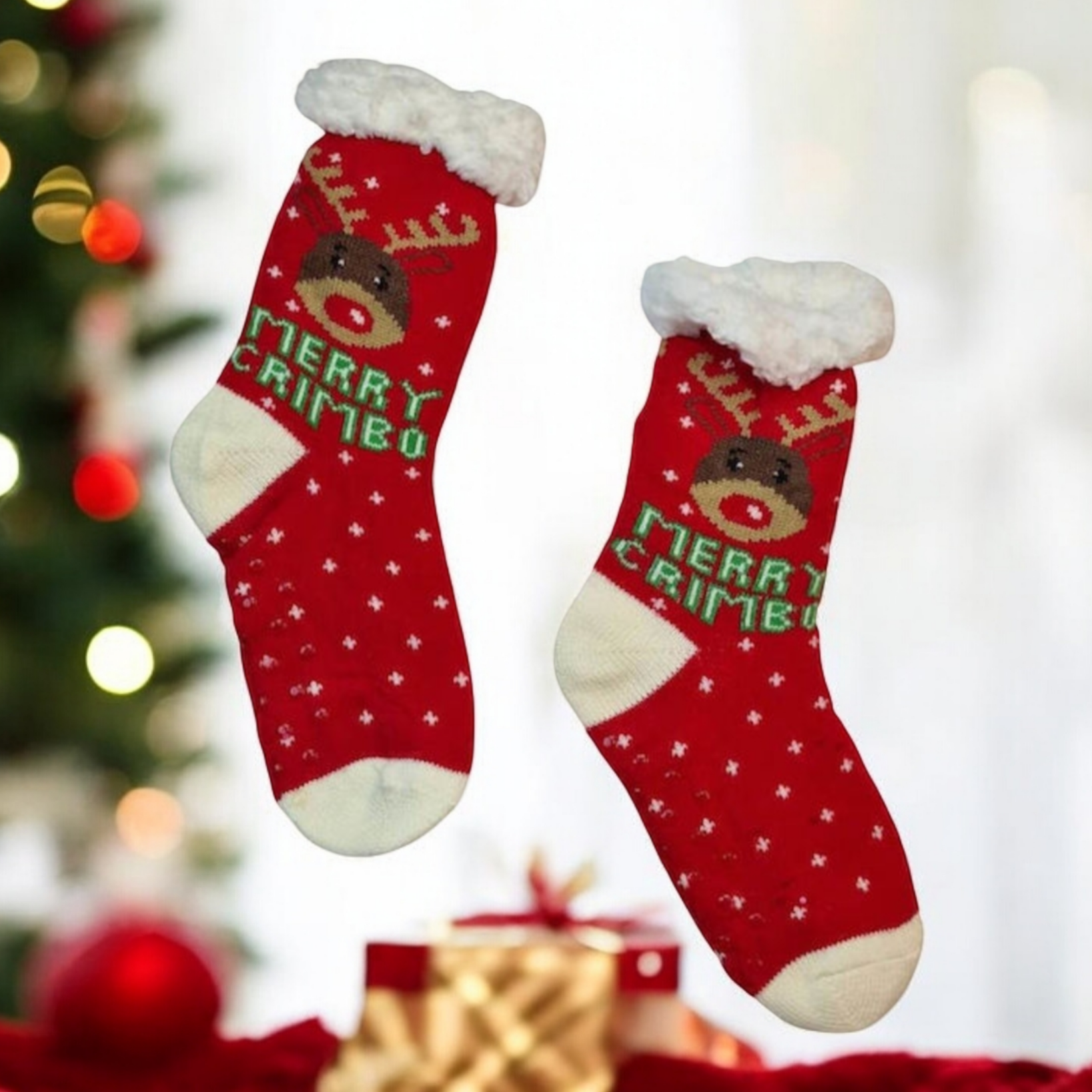 Χριστουγεννιάτικη Κάλτσα με Γούνα & Αντιολισθητικό Πάτο (τάρανδος)