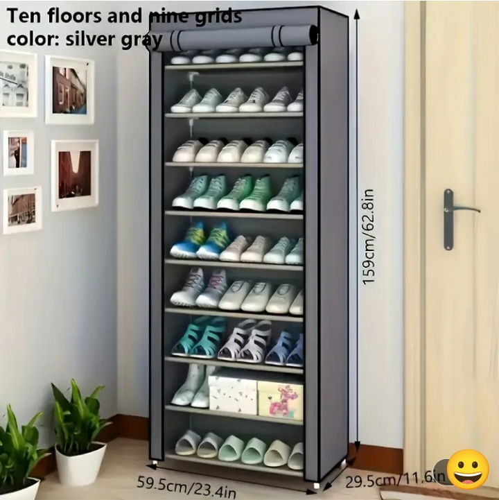 Γκρι Υφασμάτινη Παπουτσοθήκη με 9 Ράφια Διαστασεις: Μ :59,5 εκ * Π:29,5 * Υ:159
