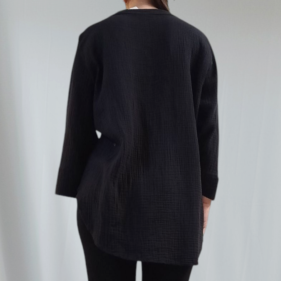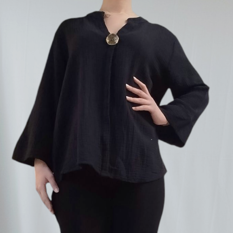 Γυναικεία Μπλούζα Μαύρη με Διακοσμητικό Κουμπί