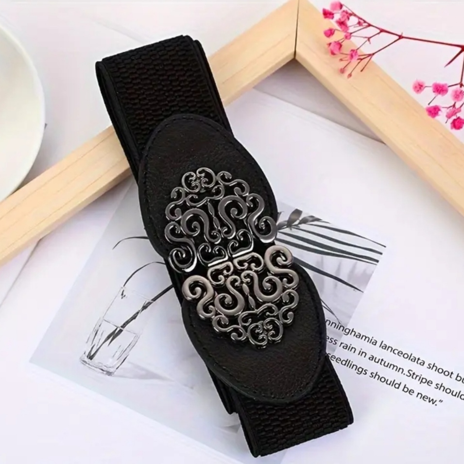 Γυναικεία Ζώνη Μαύρη με Ιδιαίτερο Ασημί Μοτίβο