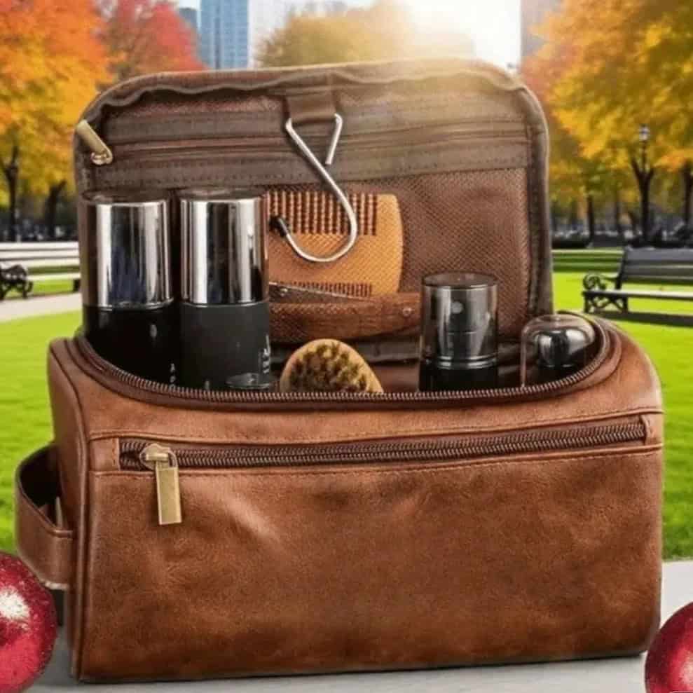 -13%Κρατήστε τα προσωπικά σας είδη οργανωμένα με στυλ! Το καφέ αντρικό νεσεσέρ διαθέτει ανθεκτικό υλικό και πρακτικά διαμερίσματα για όλα τα απαραίτητα αντικείμενα σας. Ιδανικό για ταξίδια, γυμναστήριο ή καθημερινή χρήση, συνδυάζει λειτουργικότητα και κομψό, μινιμαλιστικό design.