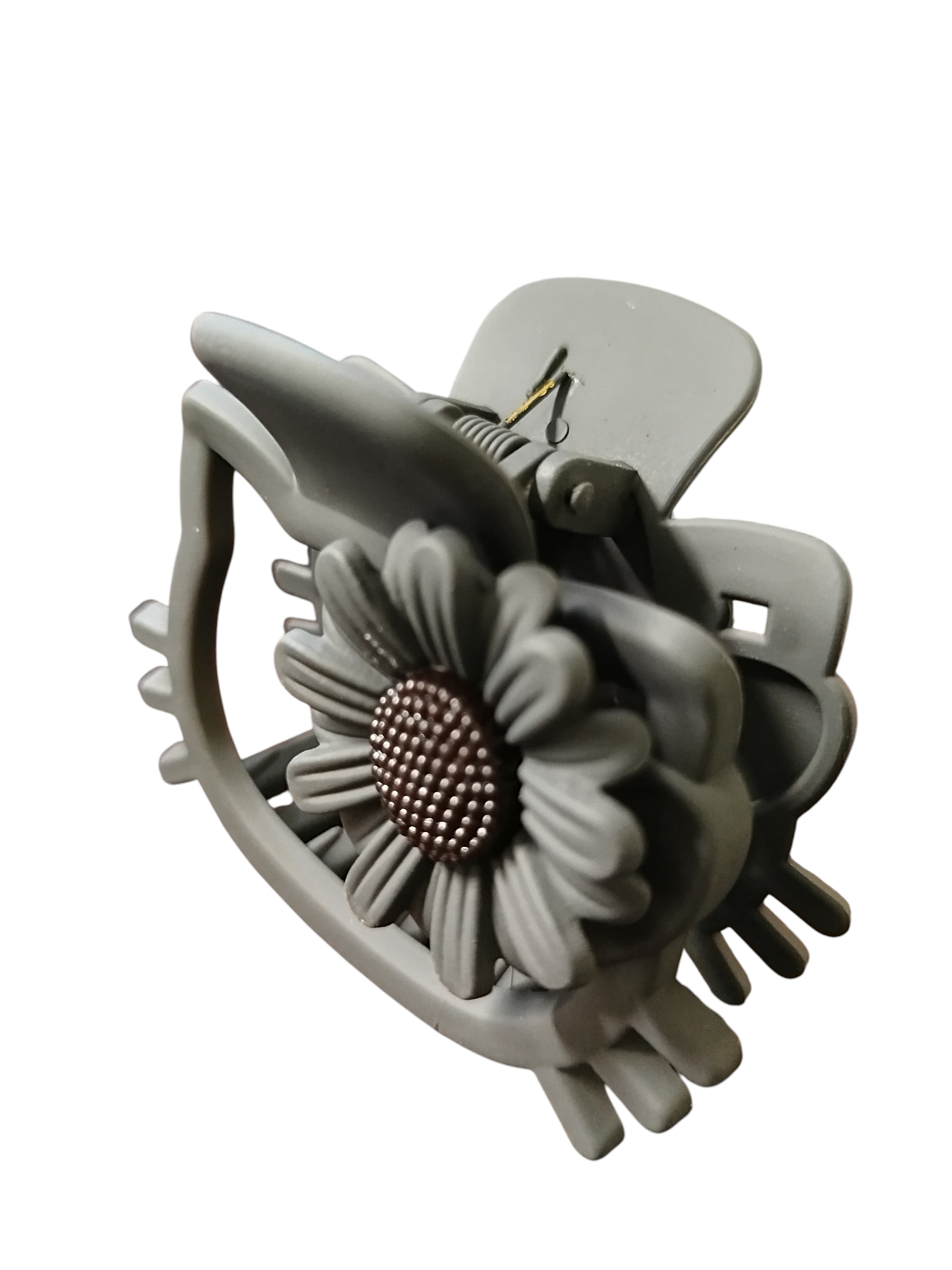 Κλάμερ Μαλλιών σε Σχήμα Hello Kitty με Διακόσμηση Μαργαρίτας – Γκρι