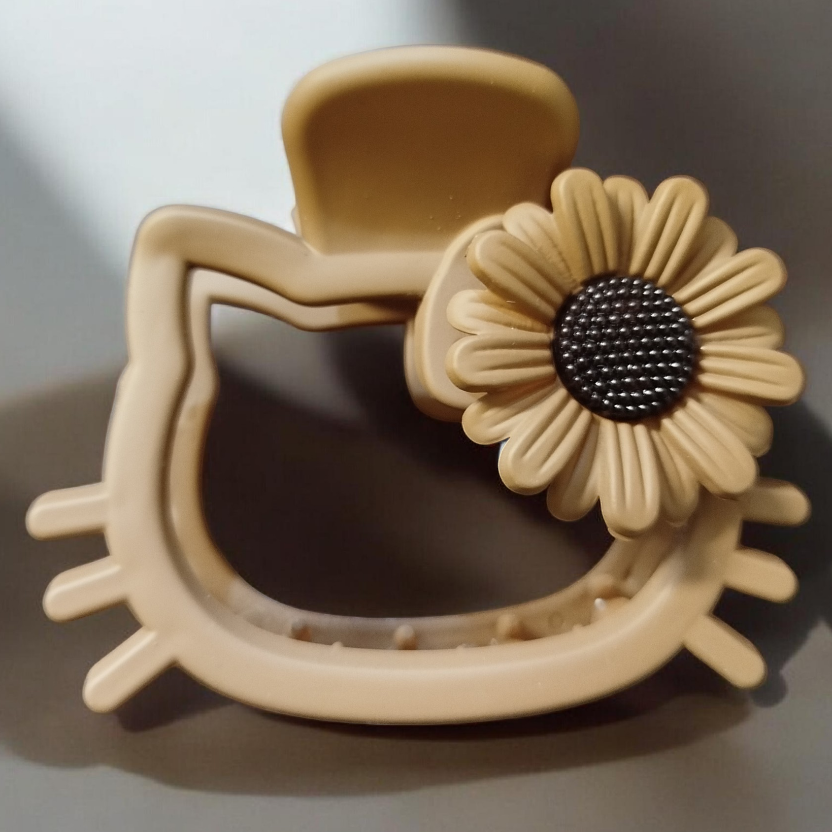 Κλάμερ Μαλλιών σε Σχήμα Hello Kitty με Διακόσμηση Μαργαρίτας – Μπεζ