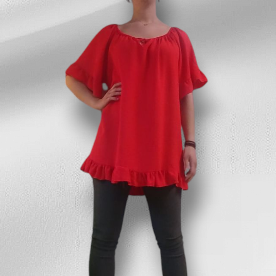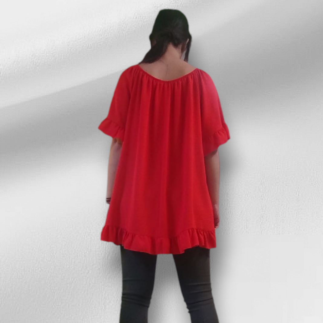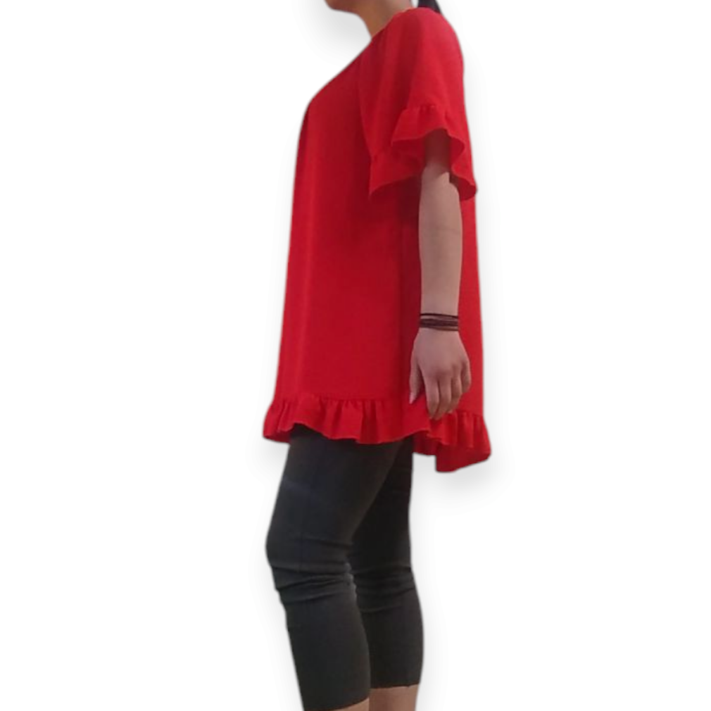 Κόκκινη Αέρινη Μπλούζα με Φραμπαλά – TOP FASHION
