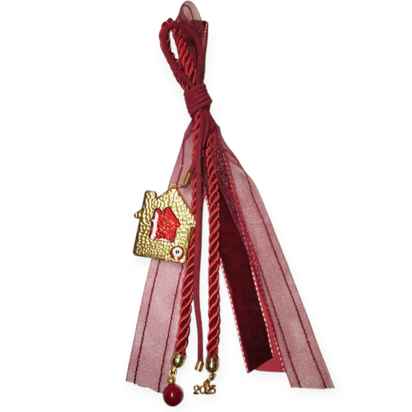 Κόκκινο Γούρι με Κορδέλες Χρυσό Σπιτάκι 2025