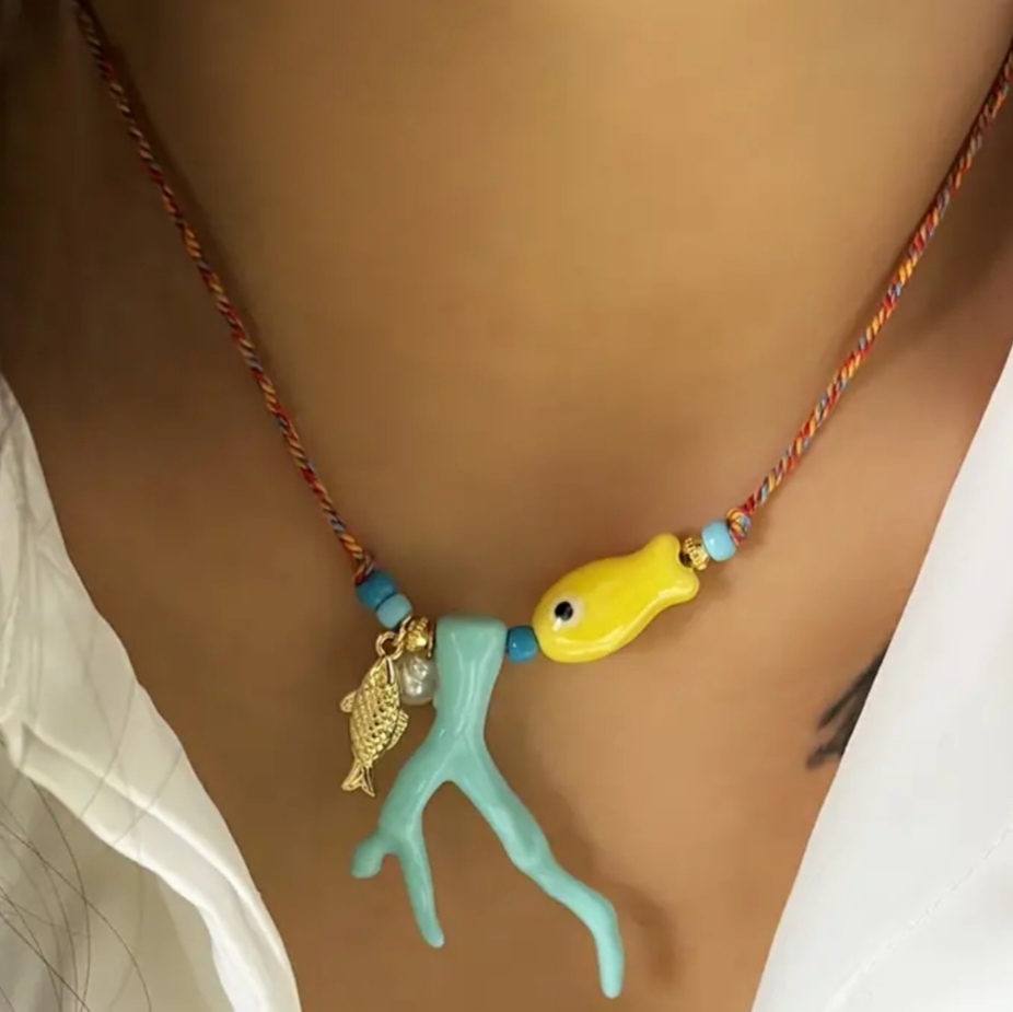 Κολιέ με Κρεμαστό Ψάρι και Κοράλι