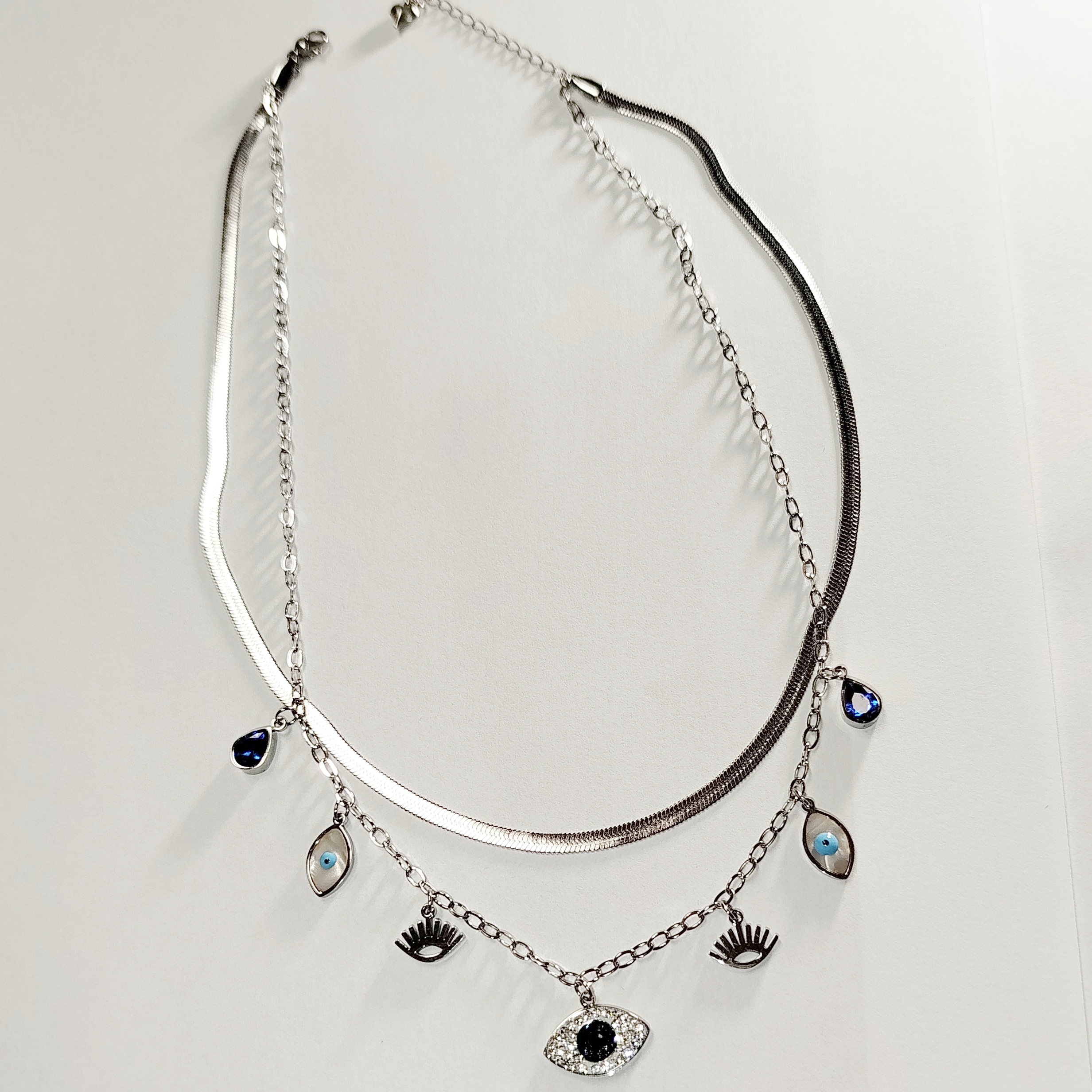 Κολιέ με Μάτια και Στρας Ατσάλι