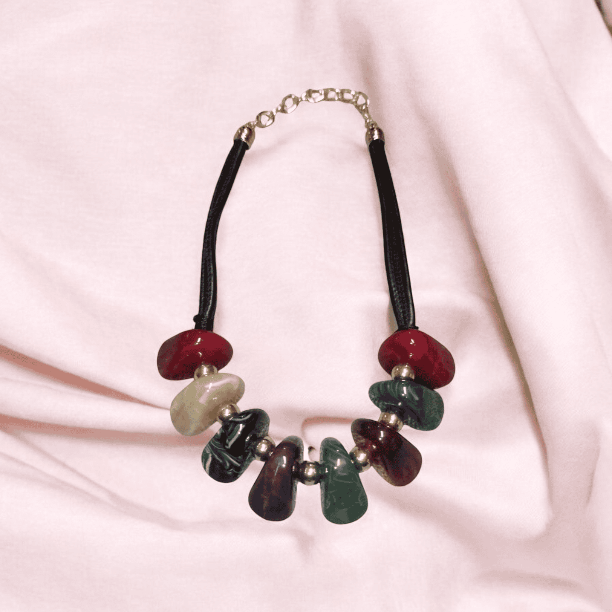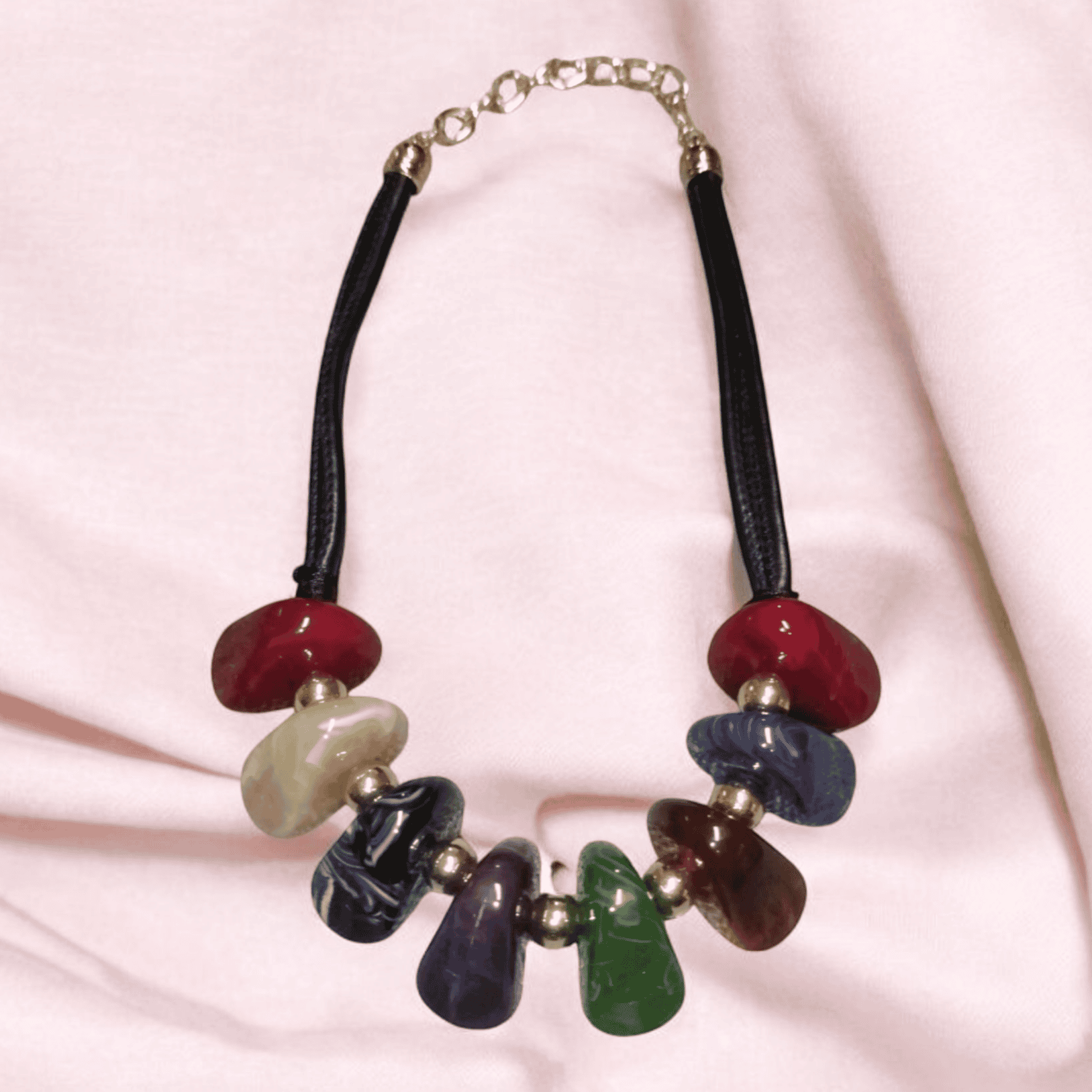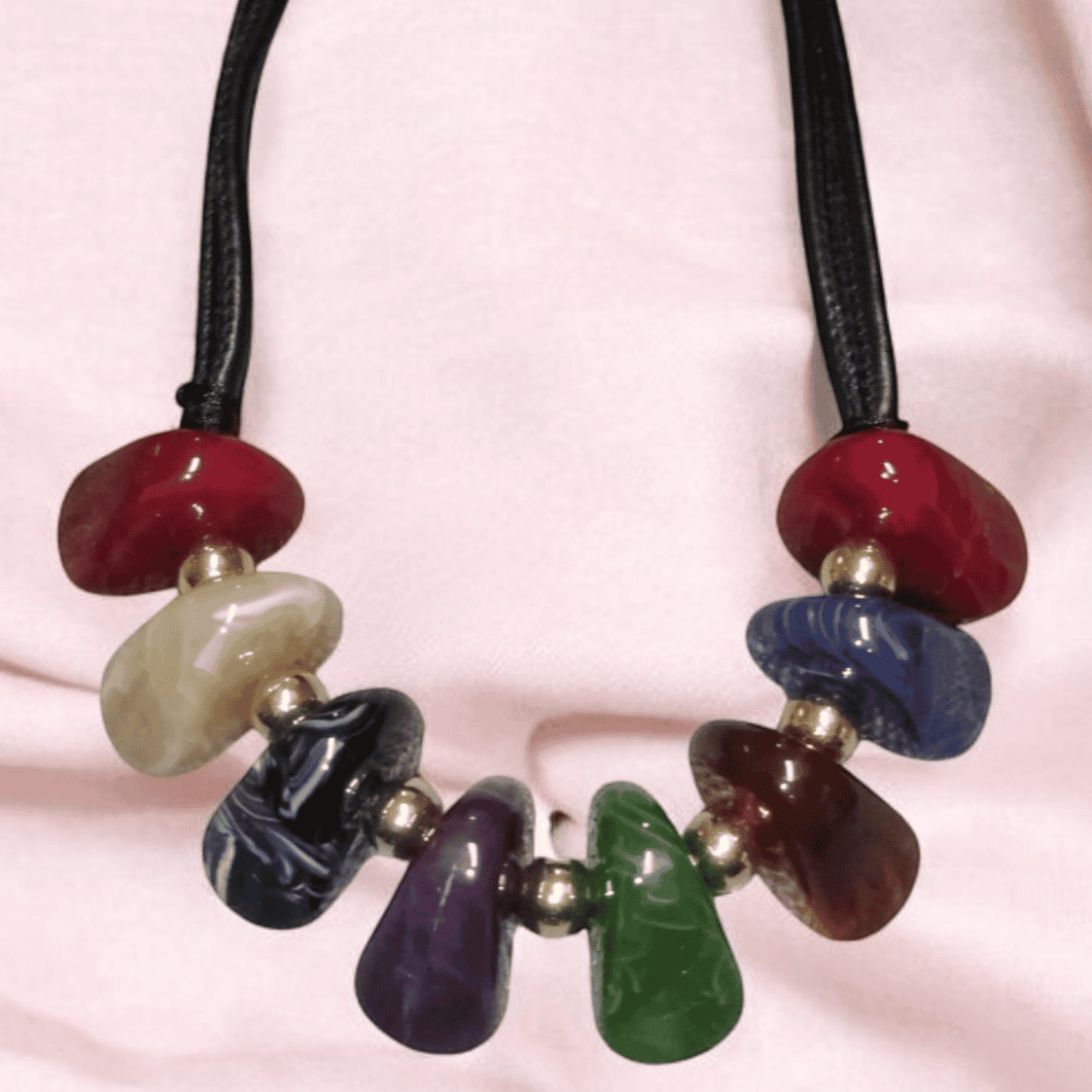 Κολιέ με Πολύχρωμες Πέτρες (Μαύρο Λουράκι)