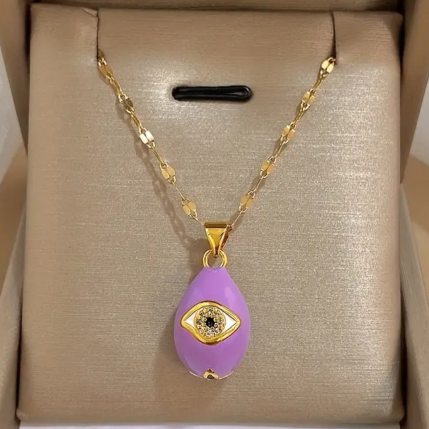 Κολιέ σε Οβάλ Σχήμα Λιλά με Ματάκι