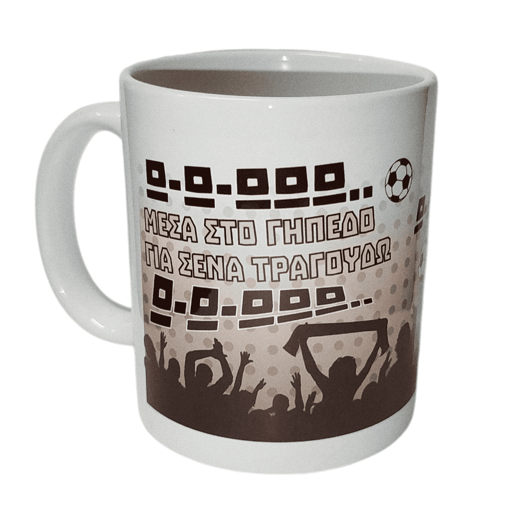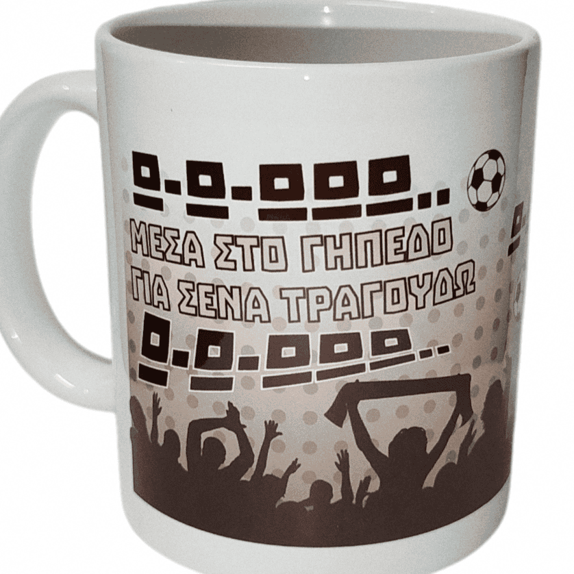 Δείξε την αγάπη σου για τον ΠΑΟΚ σε κάθε στιγμή της ημέρας με αυτή τη μοναδική κούπα! Με το σύνθημα «Μέσα στο γήπεδο για σένα τραγουδώ», εμπνευσμένο από την ατμόσφαιρα της Τούμπας και τη δύναμη της ασπρόμαυρης κερκίδας, αποτελεί την ιδανική επιλογή για κάθε πιστό οπαδό.