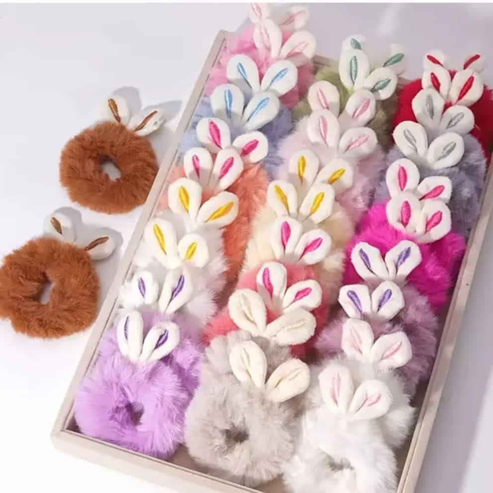 Γλυκό και απαλό λαστιχάκι μαλλιών σε μαύρη απόχρωση, με χνουδωτή υφή και παιχνιδιάρικα αυτιά κουνελιού. Κρατάει τα μαλλιά απαλά, χωρίς να τα τραβάει ή να τα φθείρει, προσφέροντας άνεση και στιλάτο look. Ιδανικό για καθημερινή χρήση, στο σπίτι ή για να προσθέσει μια χαριτωμένη λεπτομέρεια σε κάθε outfit.