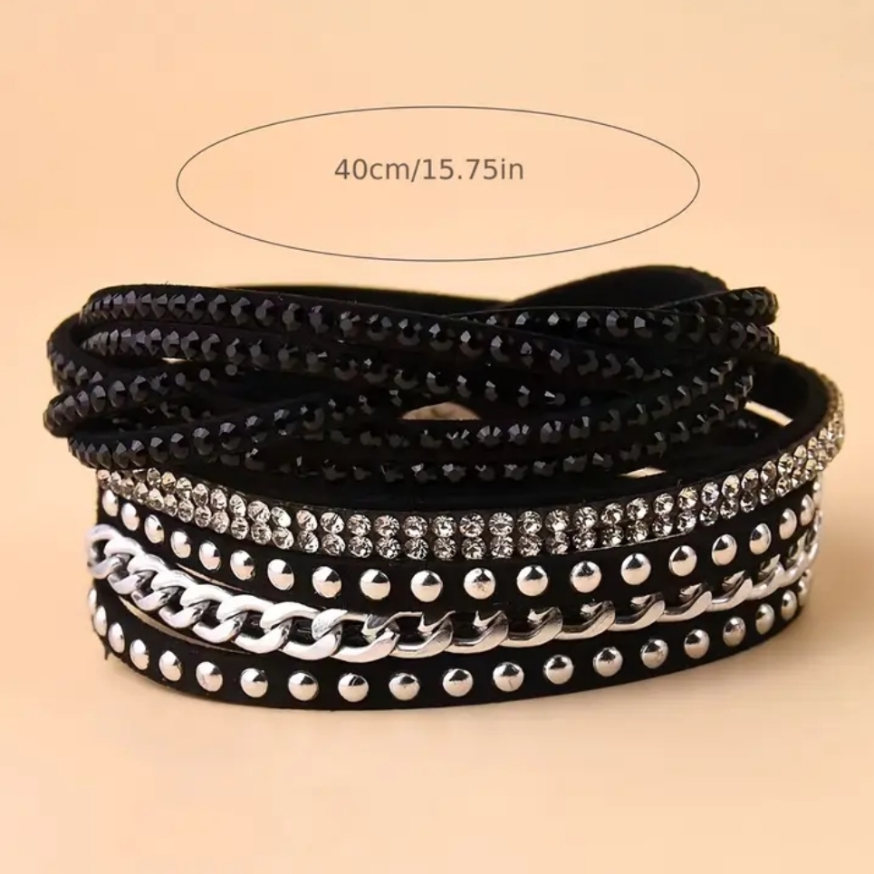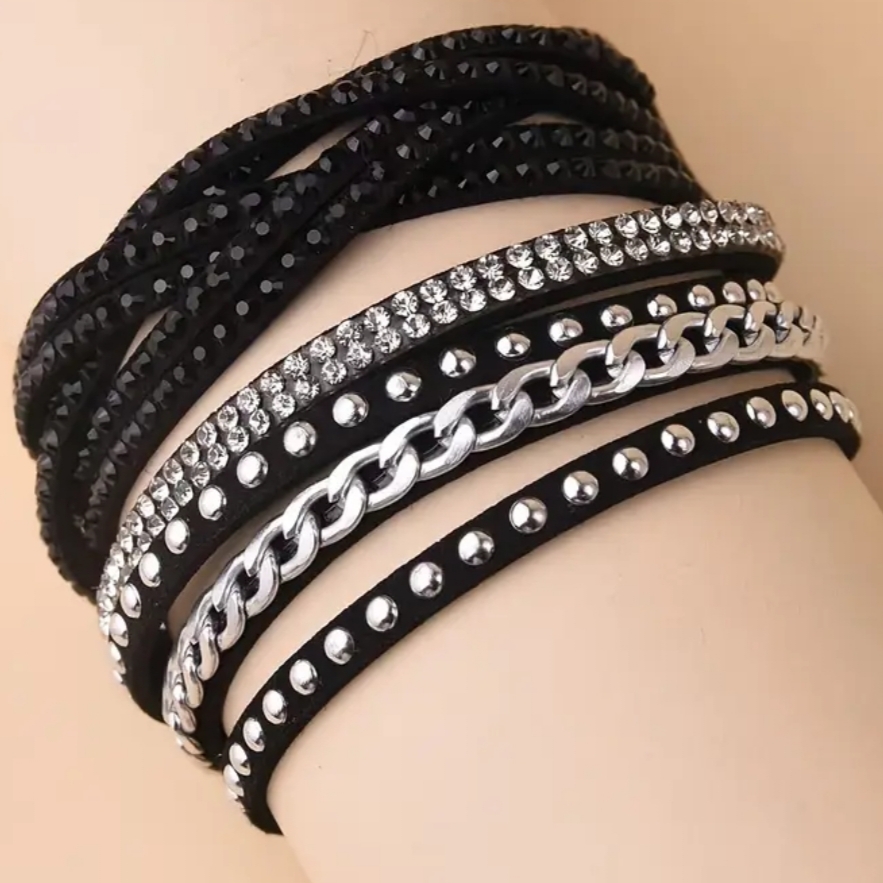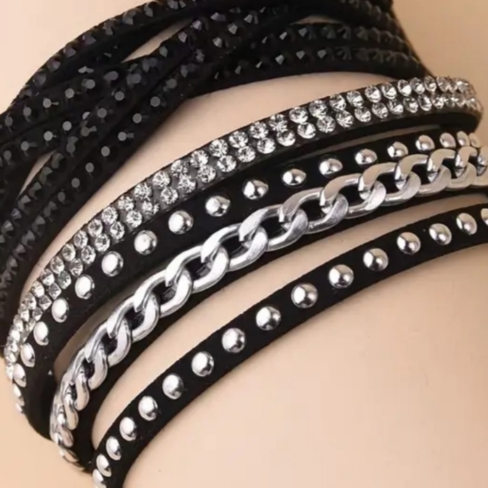 Μαύρα Βραχιόλια από Αλυσίδες, Τρουκς, Διάφανους και Μαύρους Κρύσταλλους