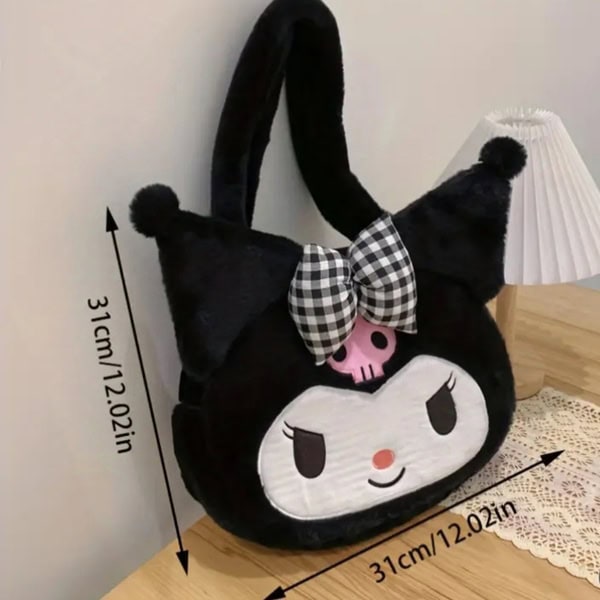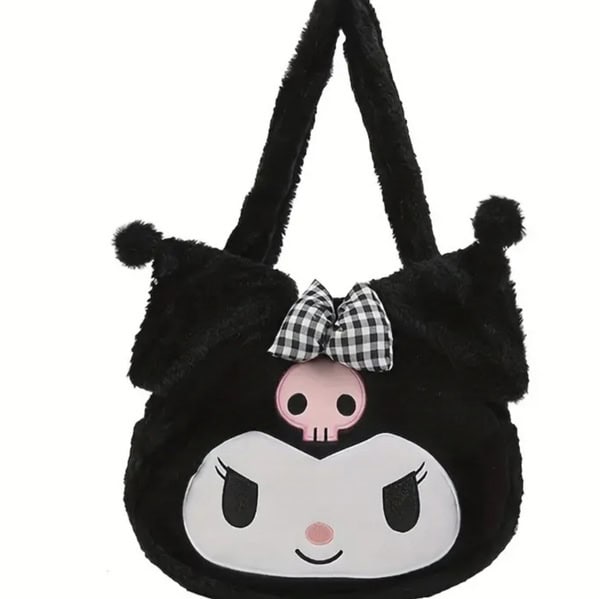 Μαύρη Χνουδωτή Βελόυδινη Τσάντα Ώμου Kuromi Sanrio