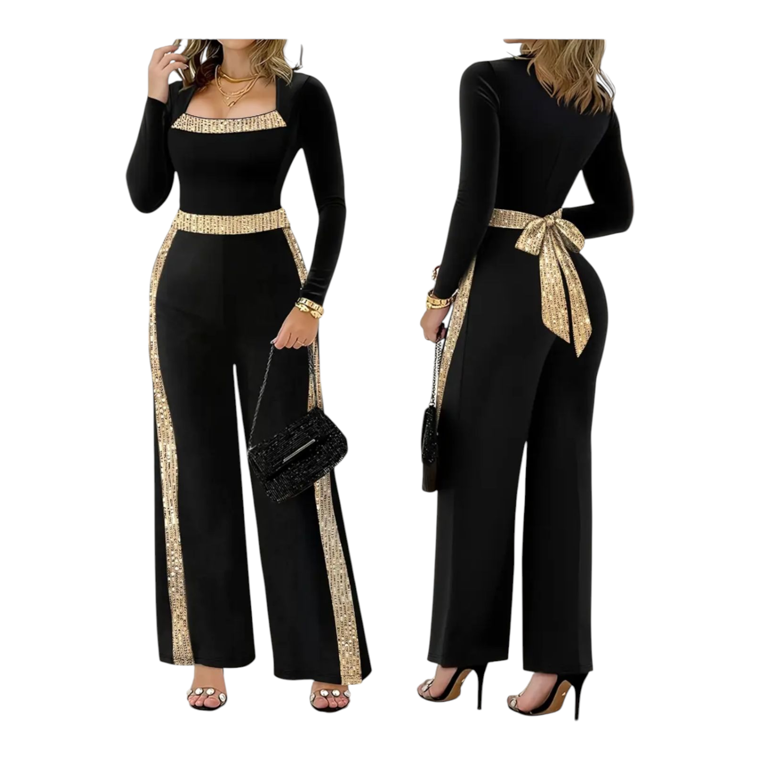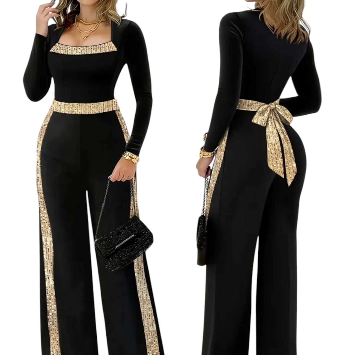 Μαύρη Γυναικεία Ολόσωμη Φόρμα με Χρυσές Λεπτομέρειες
