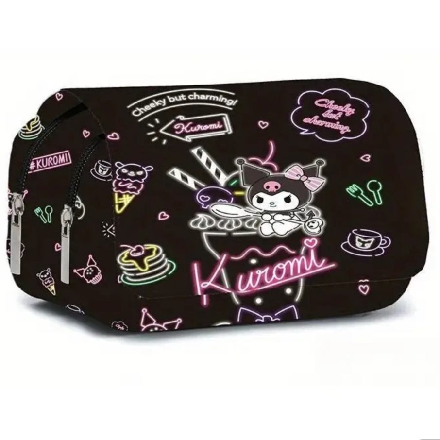 Μαύρη Κασετίνα Kuromi με Neon Σχέδιο – Δύο Θήκες