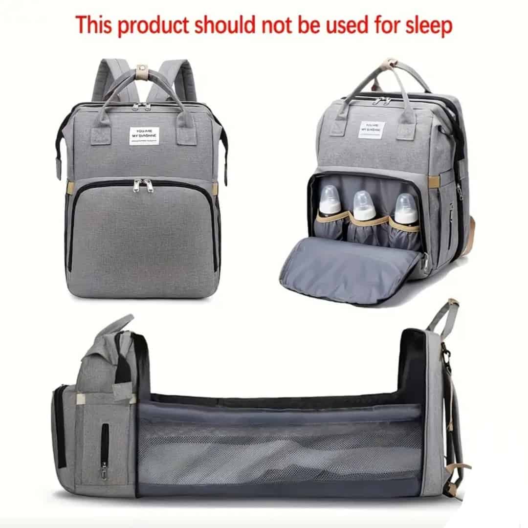 Γκρι Πολυλειτουργική Τσάντα Πλάτης Μητρότητας 2-σε-1 με Μετατροπή σε Φορητό Βρεφικό Κρεβατάκι
