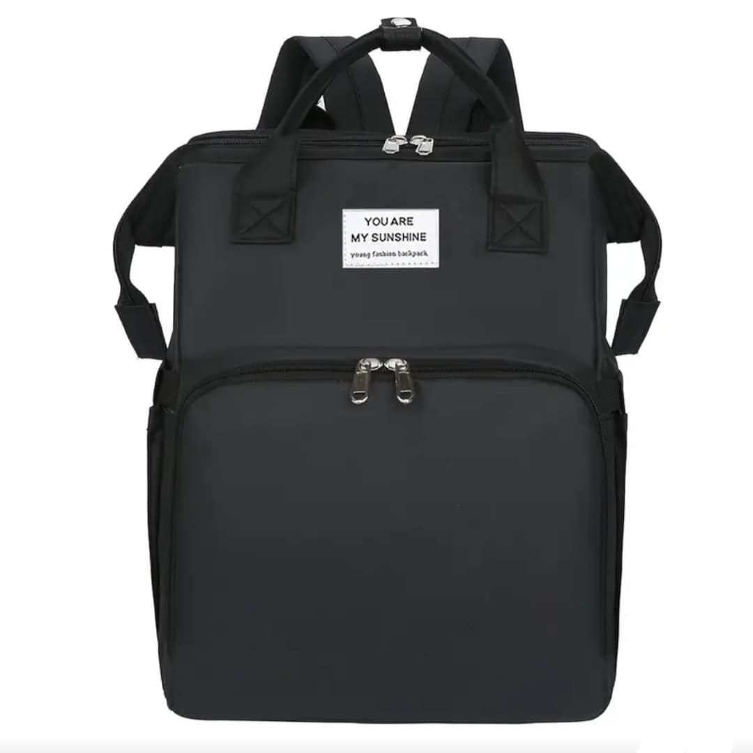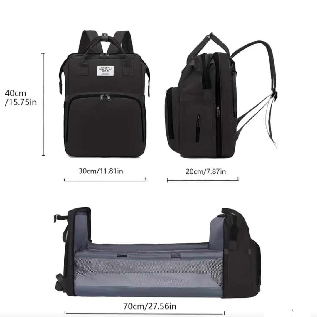 Μαύρη Πολυλειτουργική Τσάντα Πλάτης Μητρότητας 2-σε-1 με Μετατροπή σε Φορητό Βρεφικό Κρεβατάκι