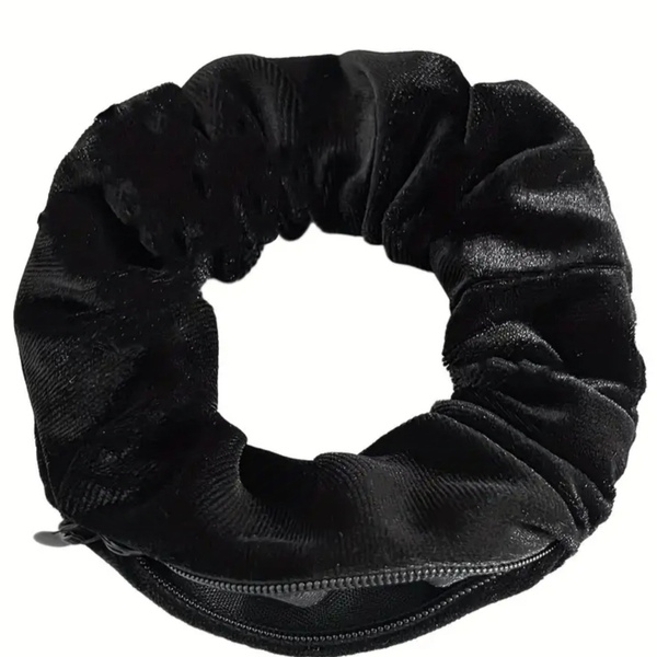Μαύρο Βελούδινο Λαστιχάκι Μαλλιών με Χώρο Αποθήκευσης