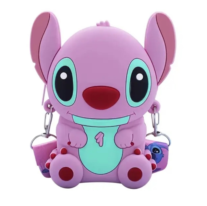 Μίνι Τσαντάκι Ώμου Σιλικόνης Stitch με Ρυθμιζόμενο Ιμάντα Ώμου Πορτοφόλι Νομισμάτων-Ροζ