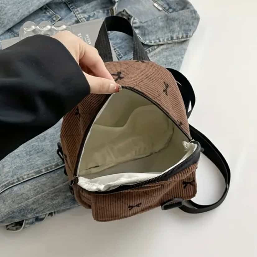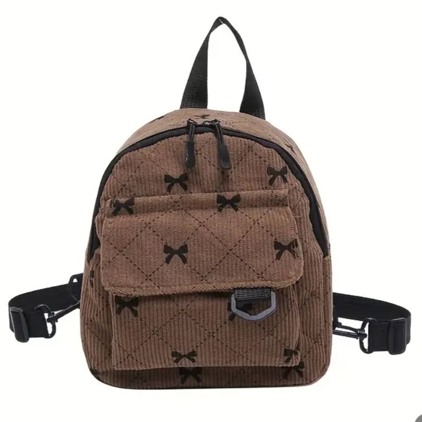 Mini Τσαντάκι Πλάτης Καφέ με Φιογκάκια