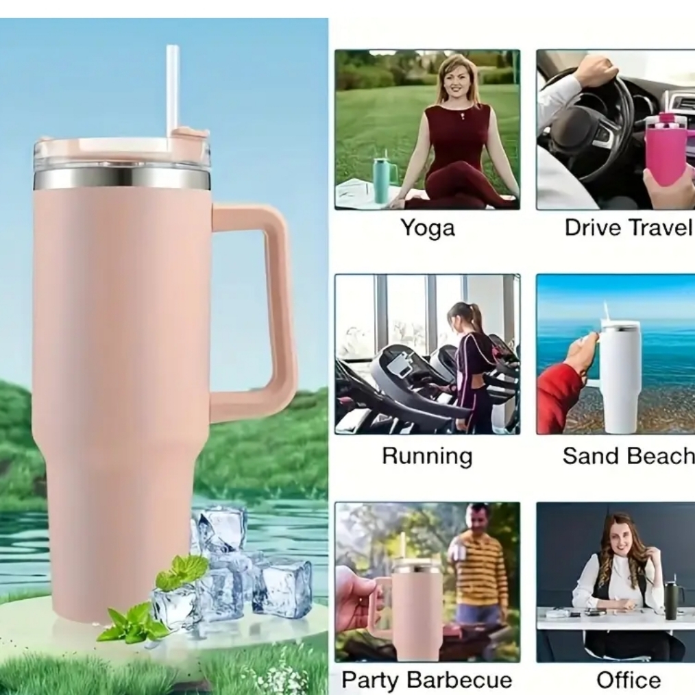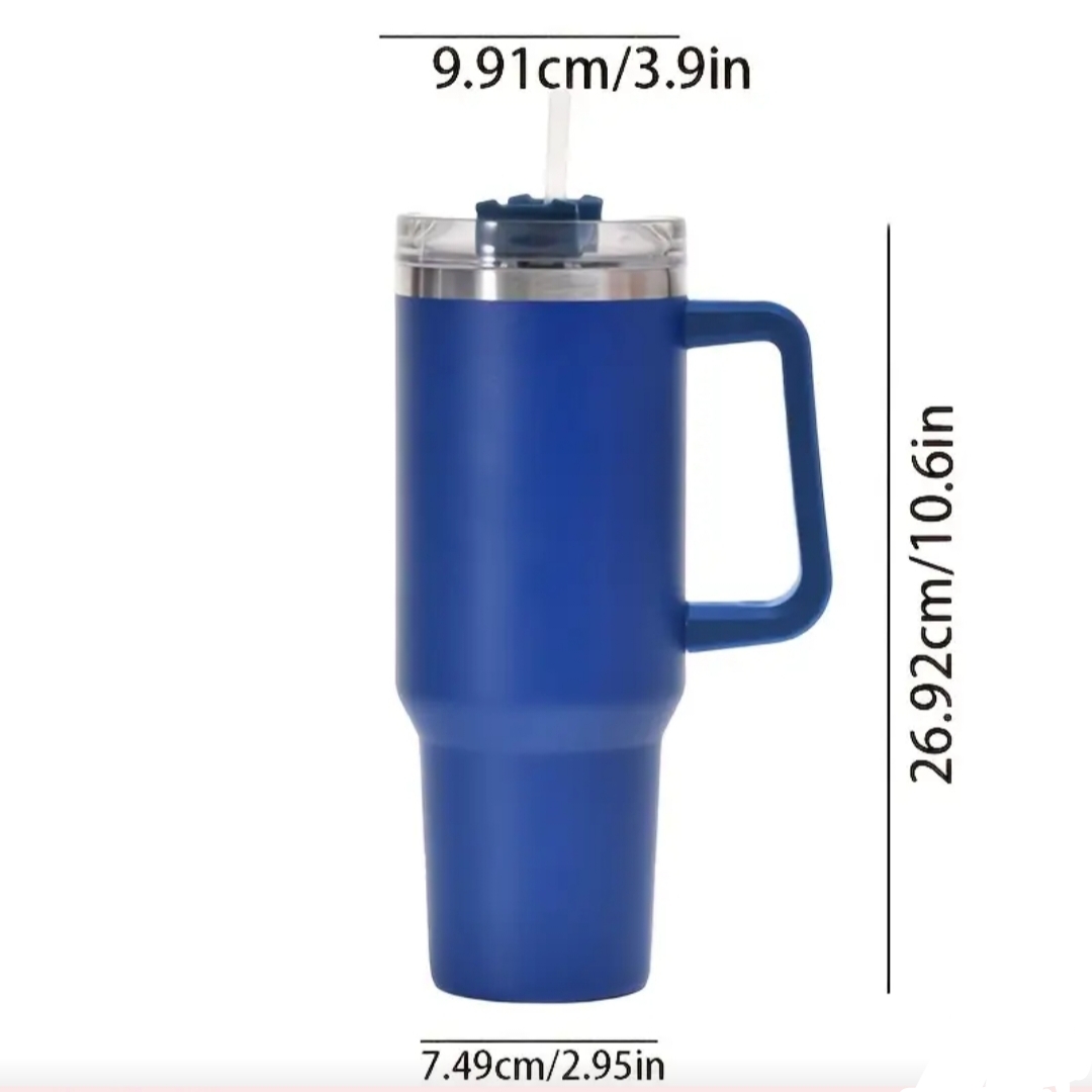 Μπλε Ανοξείδωτο Ποτήρι με Καλαμάκι και Λαβή