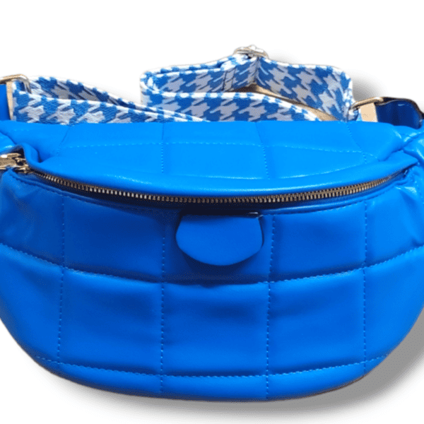 Μπλε Χιαστή Τσάντα Δερματίνη με Εμπριμέ Λουρί