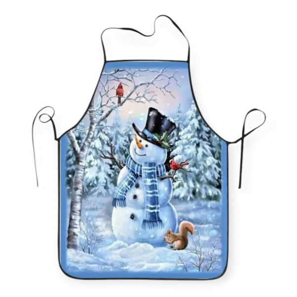 Μπλε Χριστουγεννιάτικη Ποδιά με Σχέδιο Χιονάνθρωπο