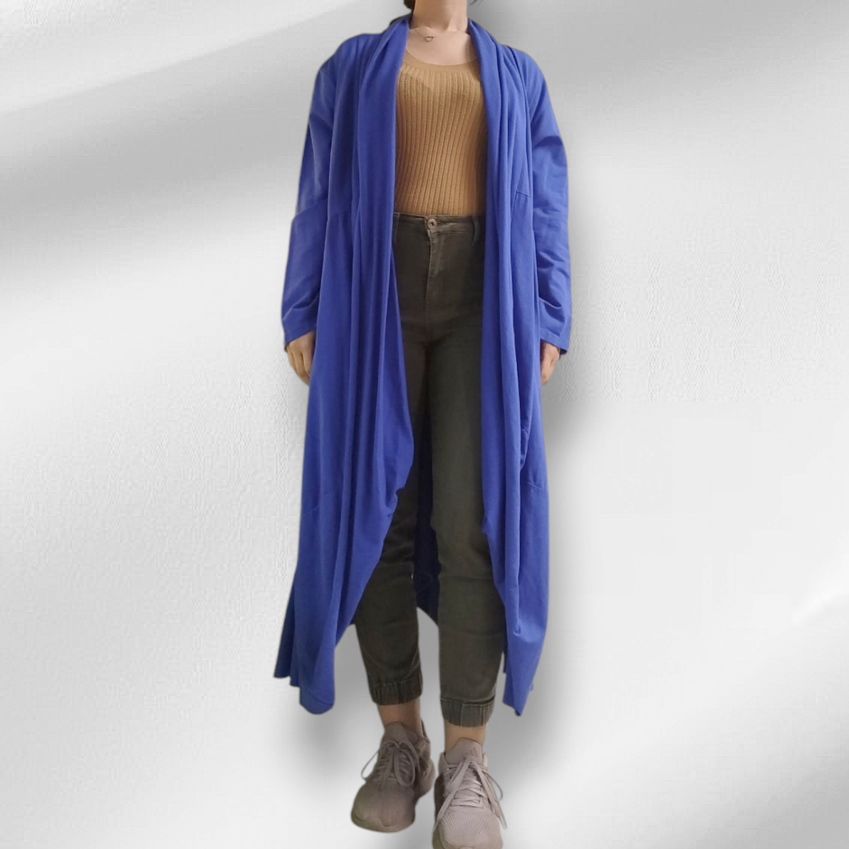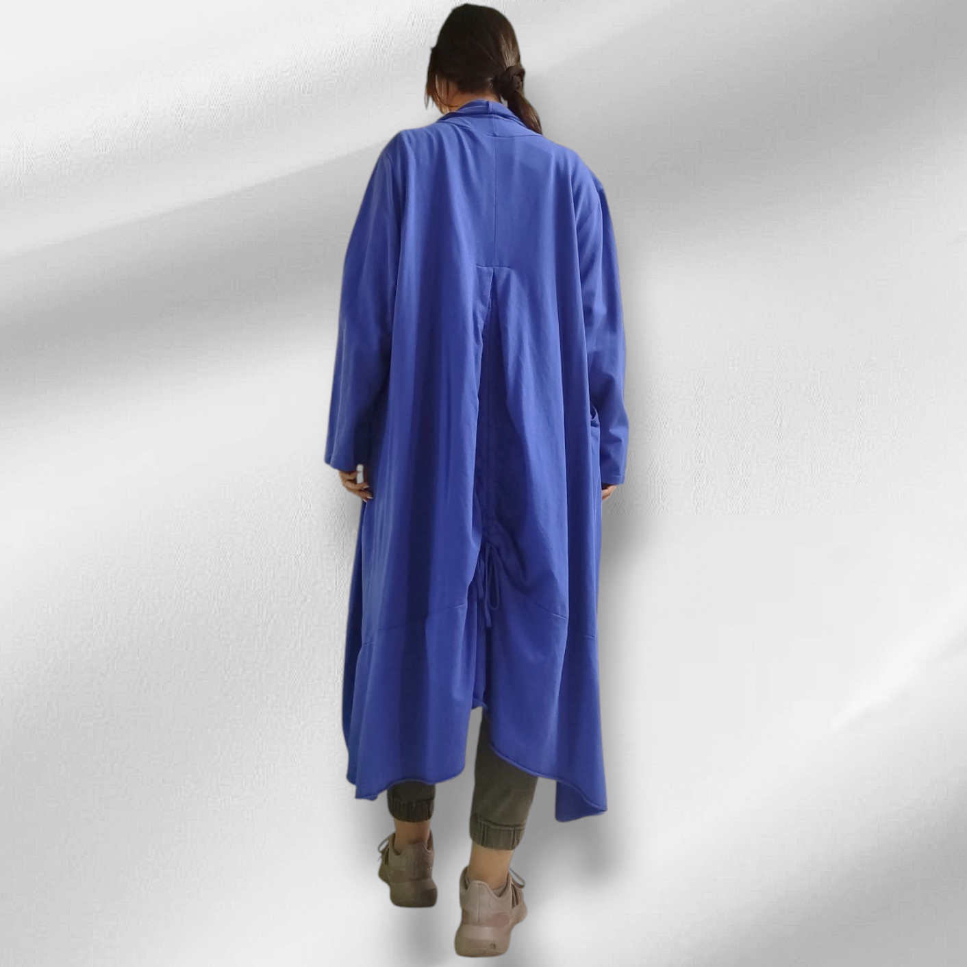 Μπλε Ριχτή Ζακέτα με Σούρα στη Πλάτη
