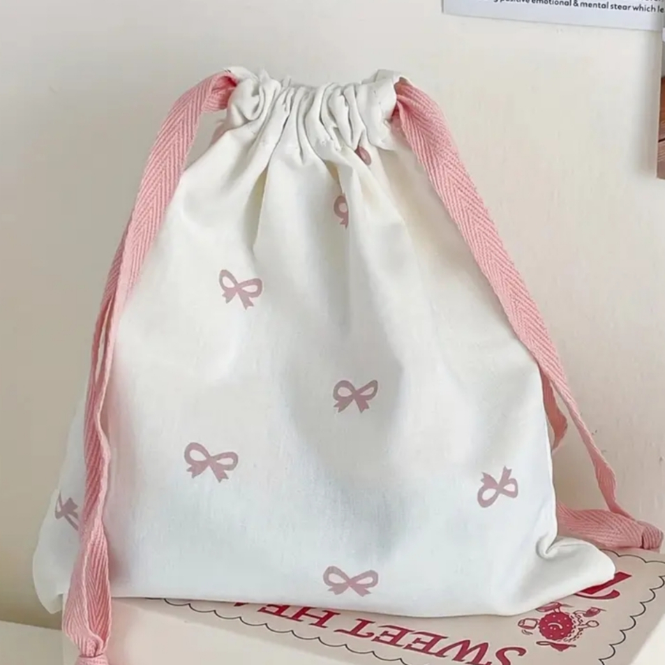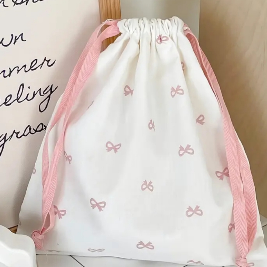 Νεσεσέρ-Πουγκί Λευκό Αποθήκευσης Μακιγιάζ με Ροζ Φιόγκους