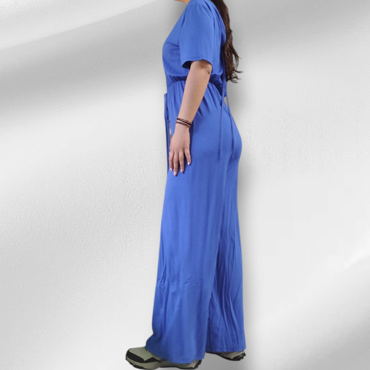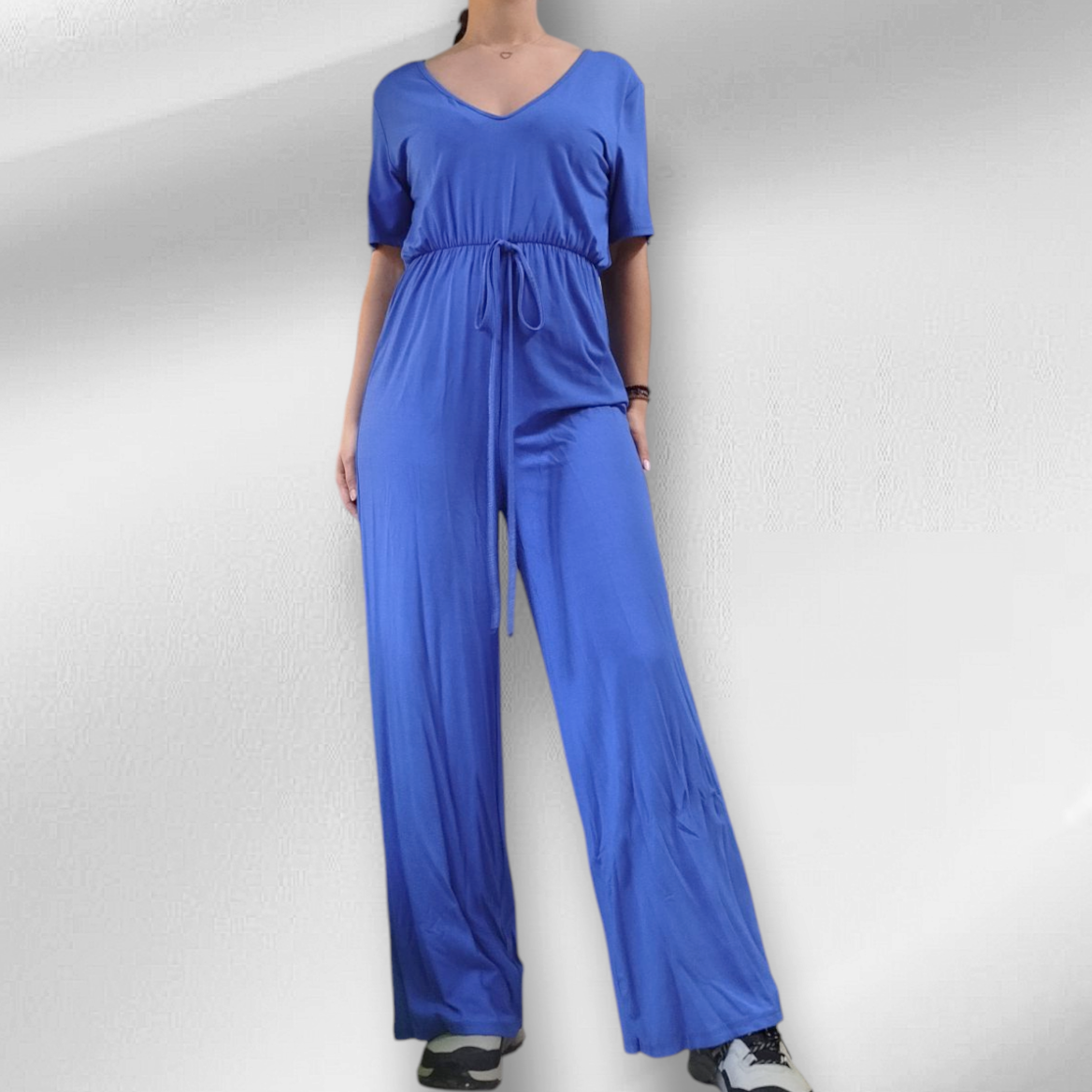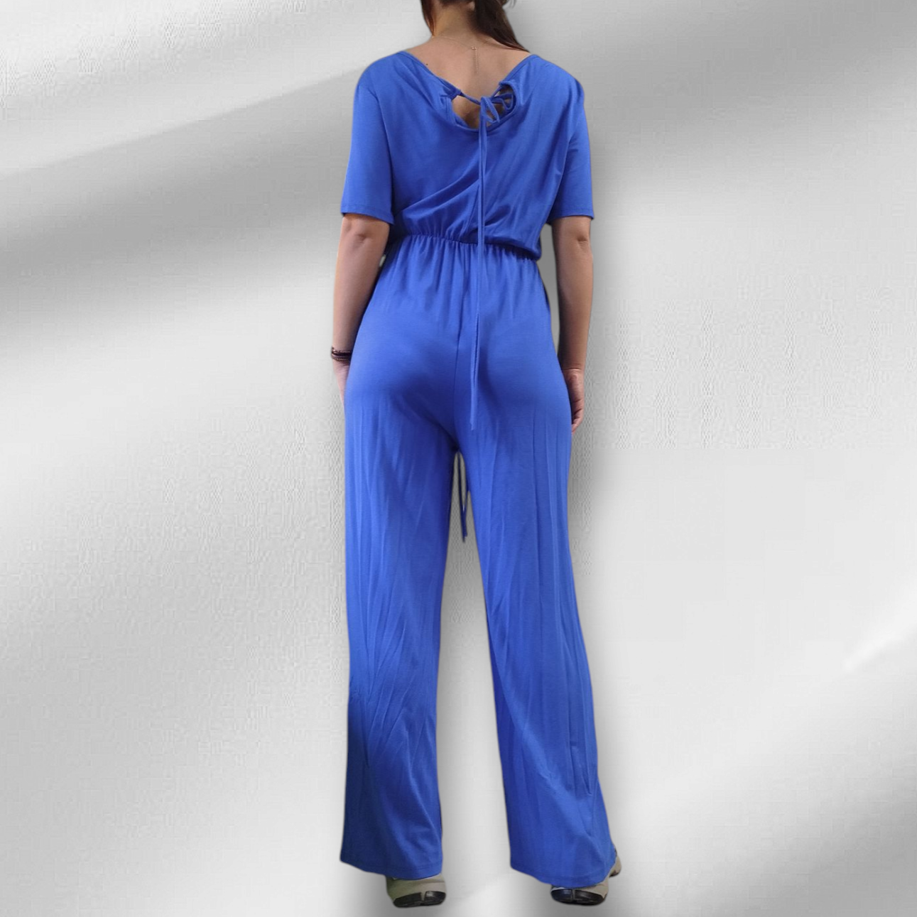 Ολόσωμη Μπλε Φόρμα με Λάστιχο στην Μέση και Κορδόνι
