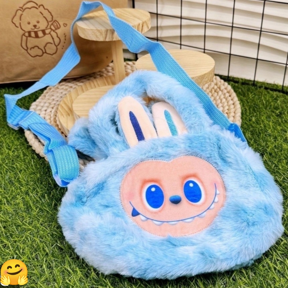 Παιδική Τσάντα Γαλάζια Βόλτας Γούνινη-The Monsters(22*16)