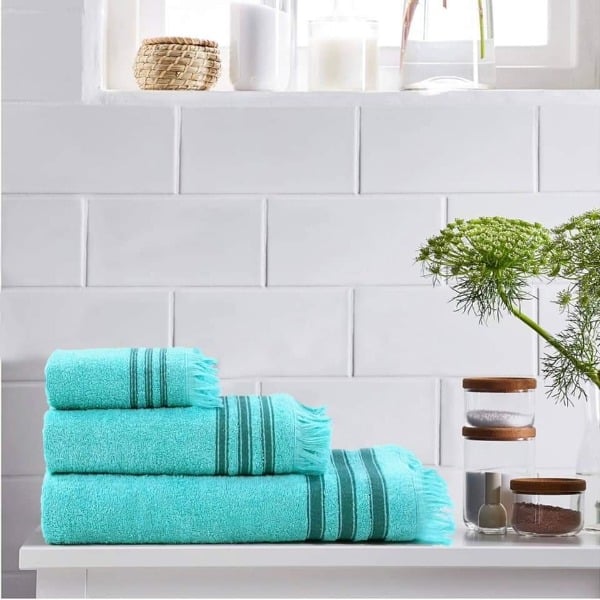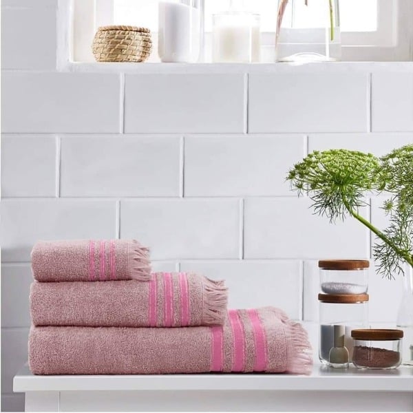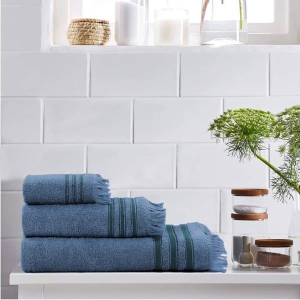 Το σετ αποτελείται από μία πετσέτα μπάνιου 70Χ140cm, μία πετσέτα προσώπου 50Χ90cm και μία πετσέτα χεριών 30Χ50cm. Σύνθεση: 100% Βαμβάκι. Βάρος: 480gr