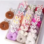 Καφέ Χνουδωτό Λαστιχάκι Μαλλιών με Αυτιά Κουνελιού (2τμχ)