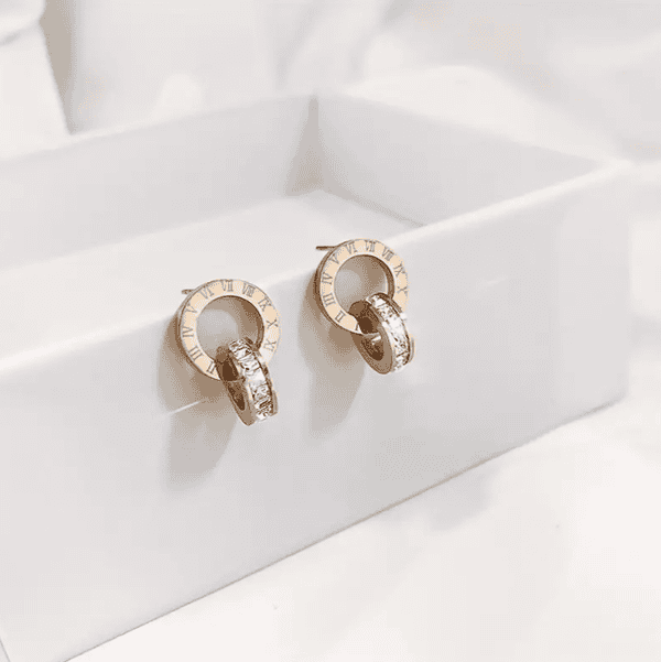 Ροζ Χρυσό Σετ Κοσμημάτων – Κρίκοι με Στρας και Λατινικούς Αριθμούς 3 τμχ.