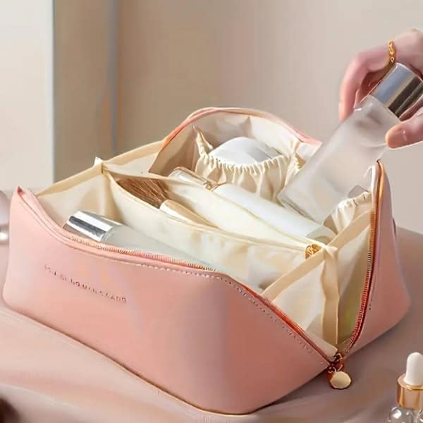 Ροζ Τσαντάκι Νεσεσέρ με Πολλαπλές Θήκες Καλλυντικών Δερματίνη