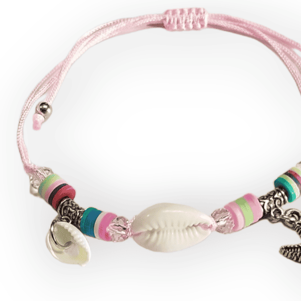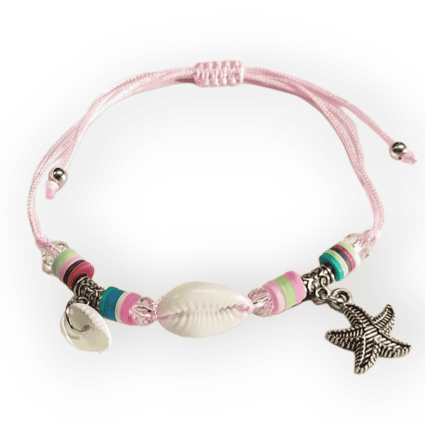 Ροζ Βραχιόλι με Κοχύλια και Πολύχρωμες Χάντρες