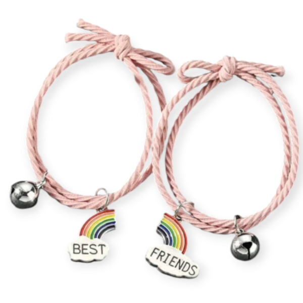 Ροζ Βραχιόλια Φιλίας Ουράνιο Τόξο και Χάντρα 2τμχ.