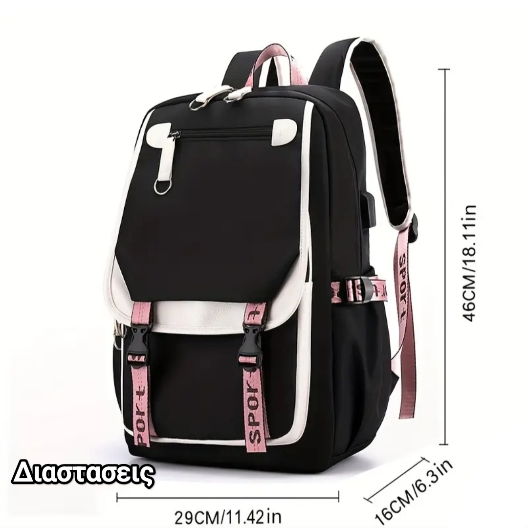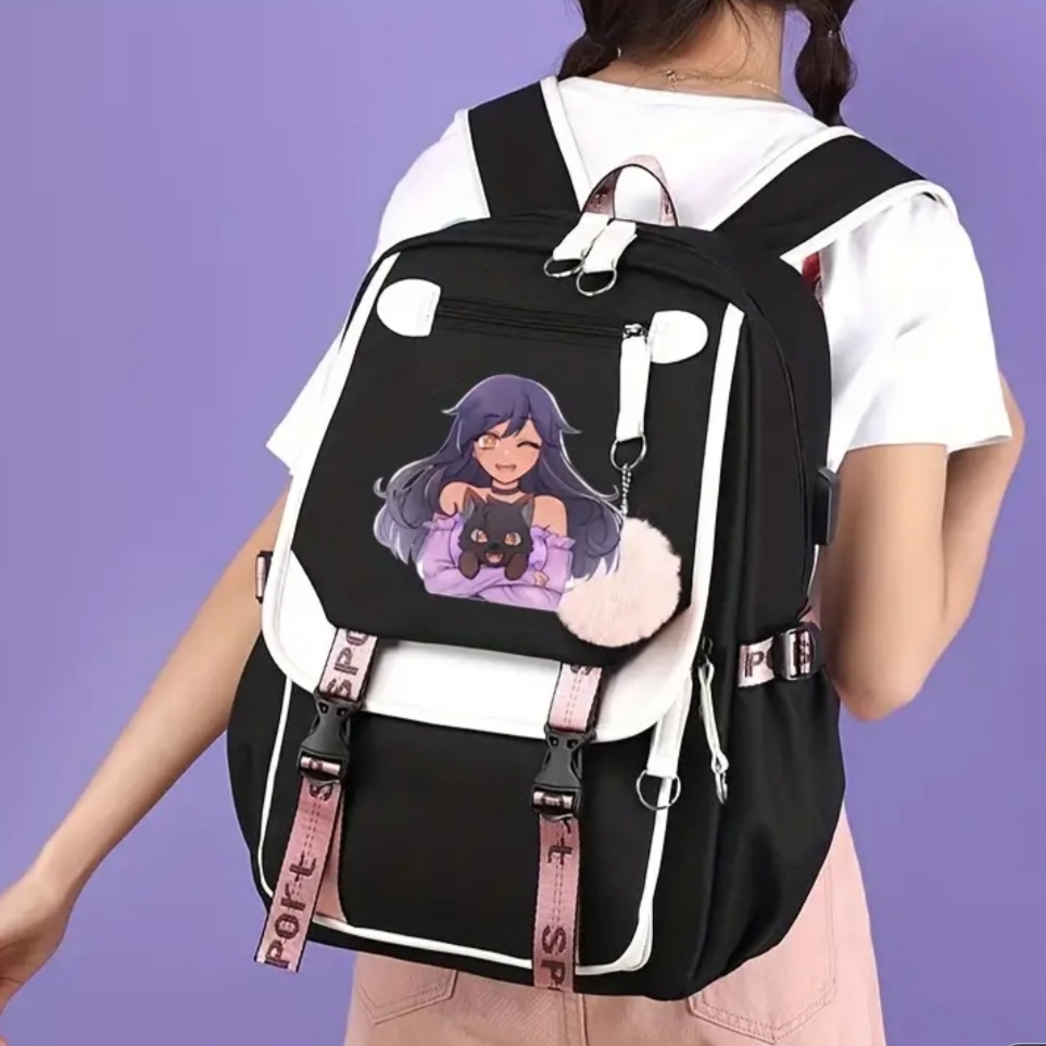 Σχολική Μαύρη Τσάντα με Στάμπα Άνιμε