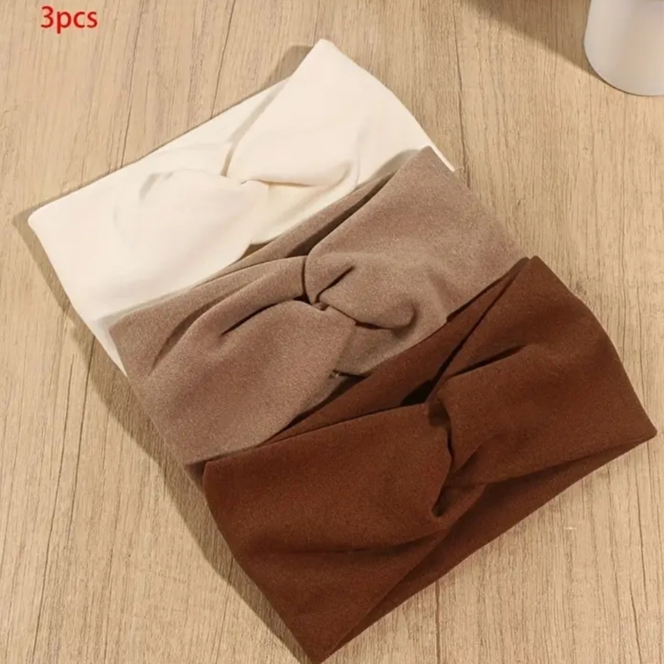 Σετ 3 Κορδέλες Μαλλιών (Λευκή, Καφέ, Μπεζ)