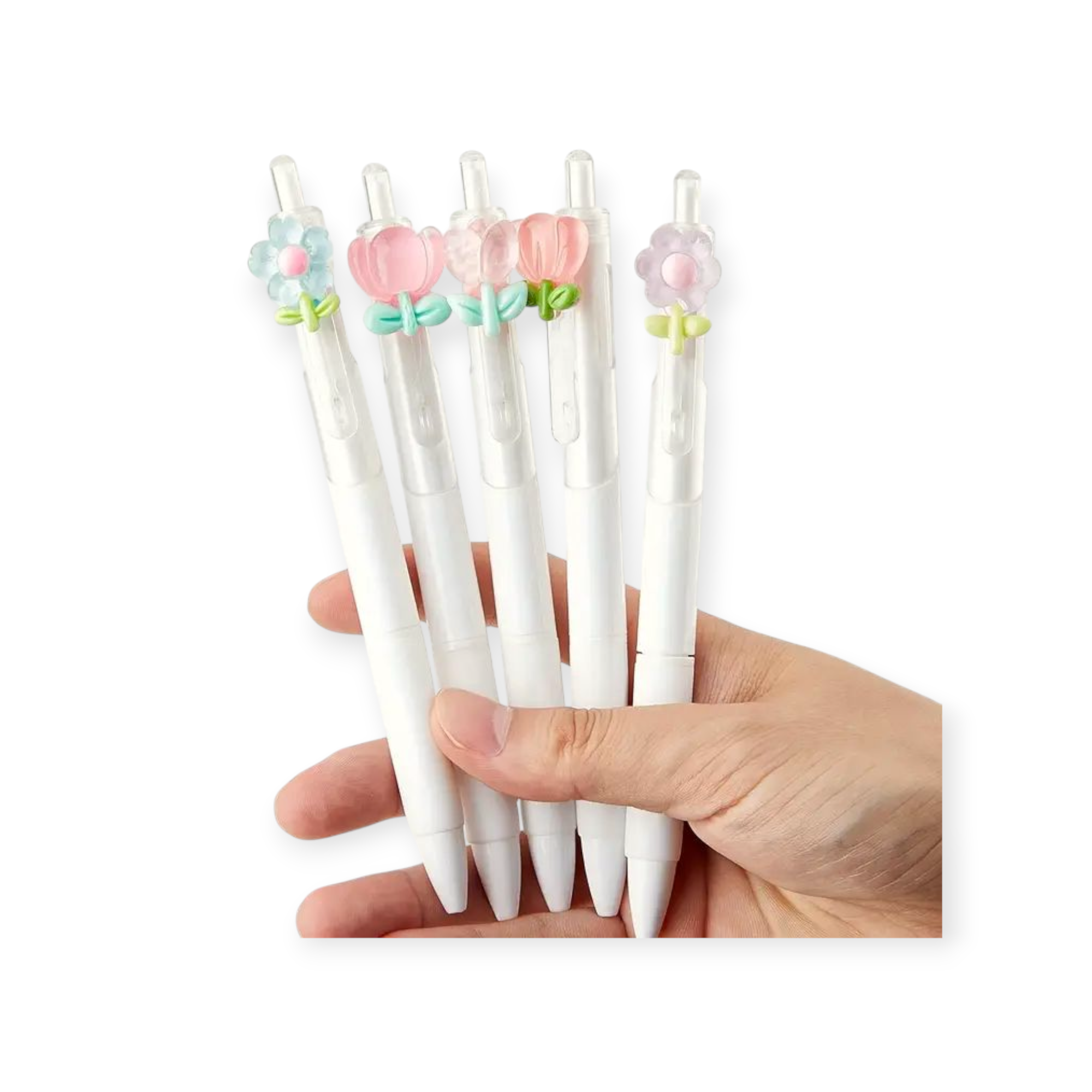 Σετ 5 Στυλό Διακοσμημένα με Σχέδια Λουλουδιών