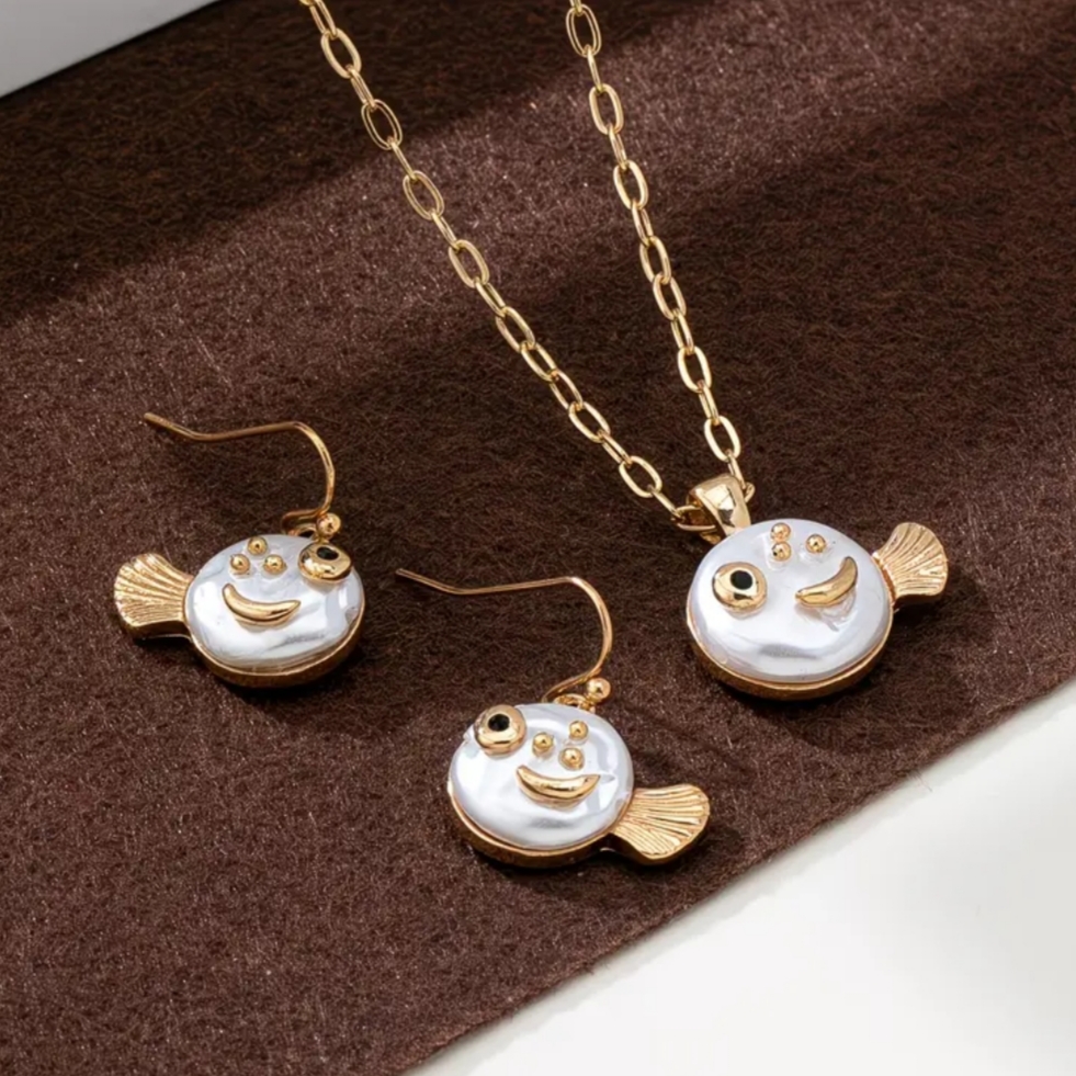 Σετ Ατσάλινο Κολιέ & Σκουλαρίκια σε Χρυσό Χρώμα με Σχέδιο Ψαράκι