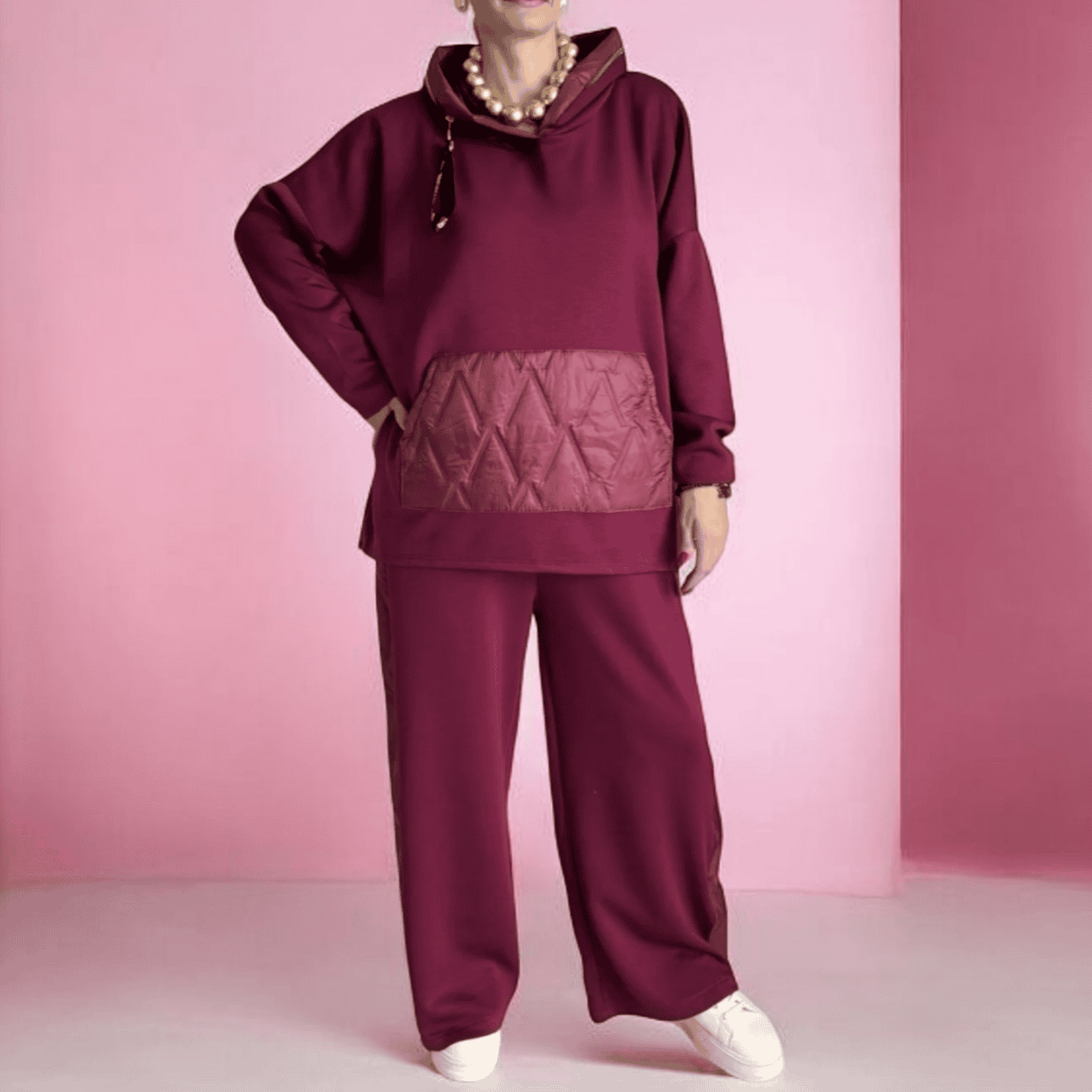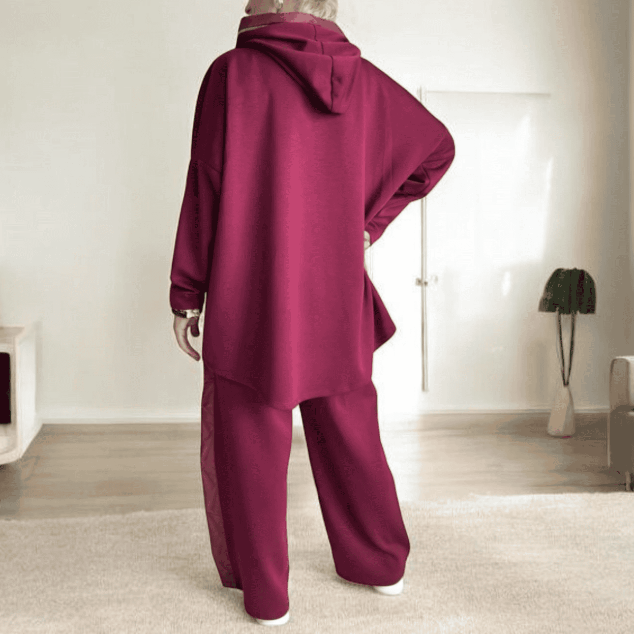 Σετ Γυναικείο Μπορντό Φούτερ Μπλούζα & Παντελόνι (Over Size)