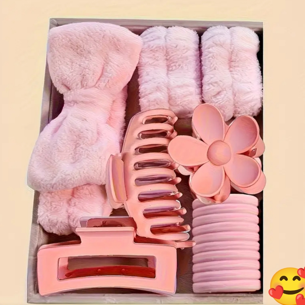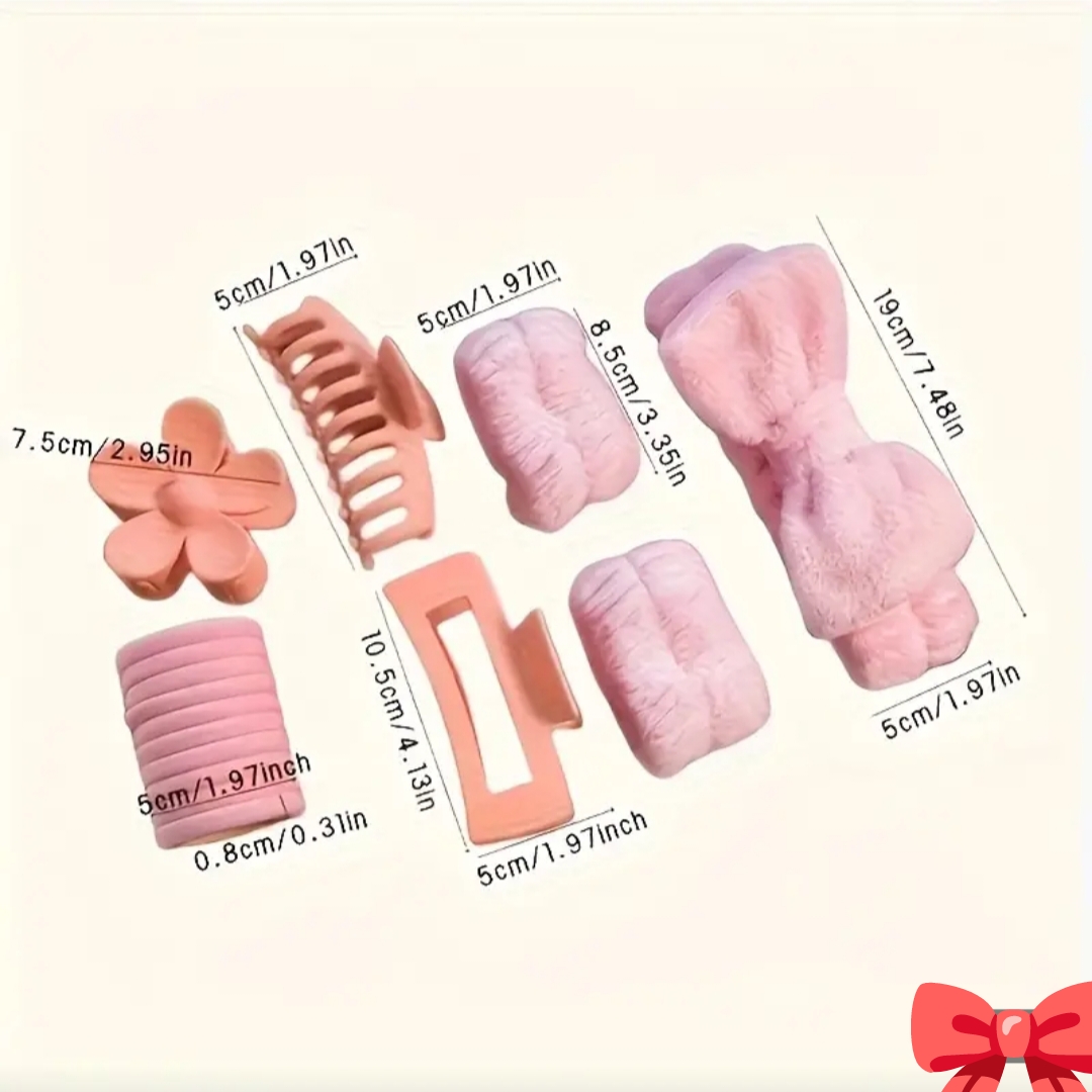 Σετ Κορδέλα Κλάμερ Λαστιχάκια Μαλλιών Ροζ
